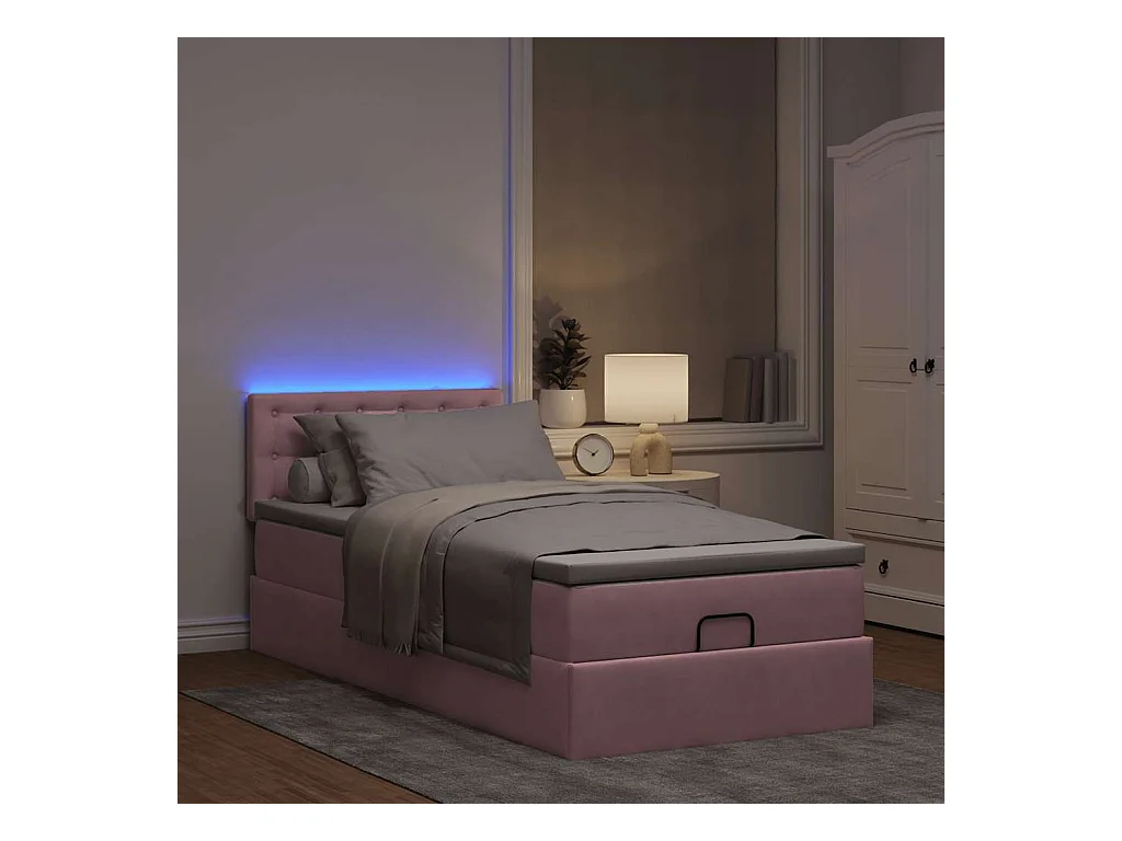 Cadre de lit ottoman avec matelas rose 90x200 cm velours