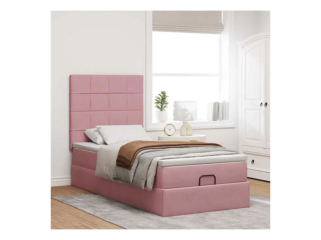Cadre de lit ottoman avec matelas rose 90x200 cm velours