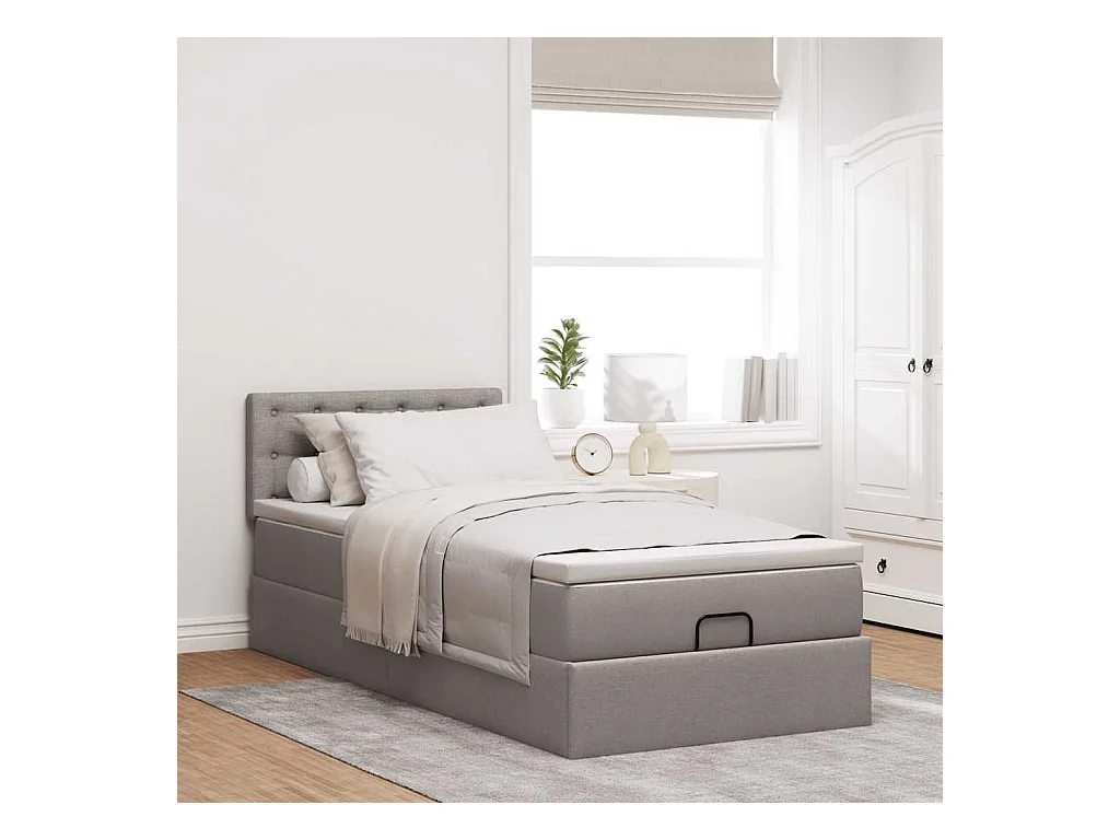 Cadre de lit ottoman avec matelas taupe 100x200 cm tissu