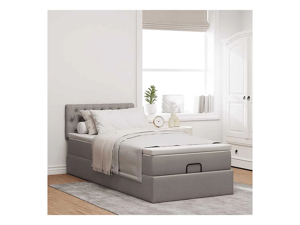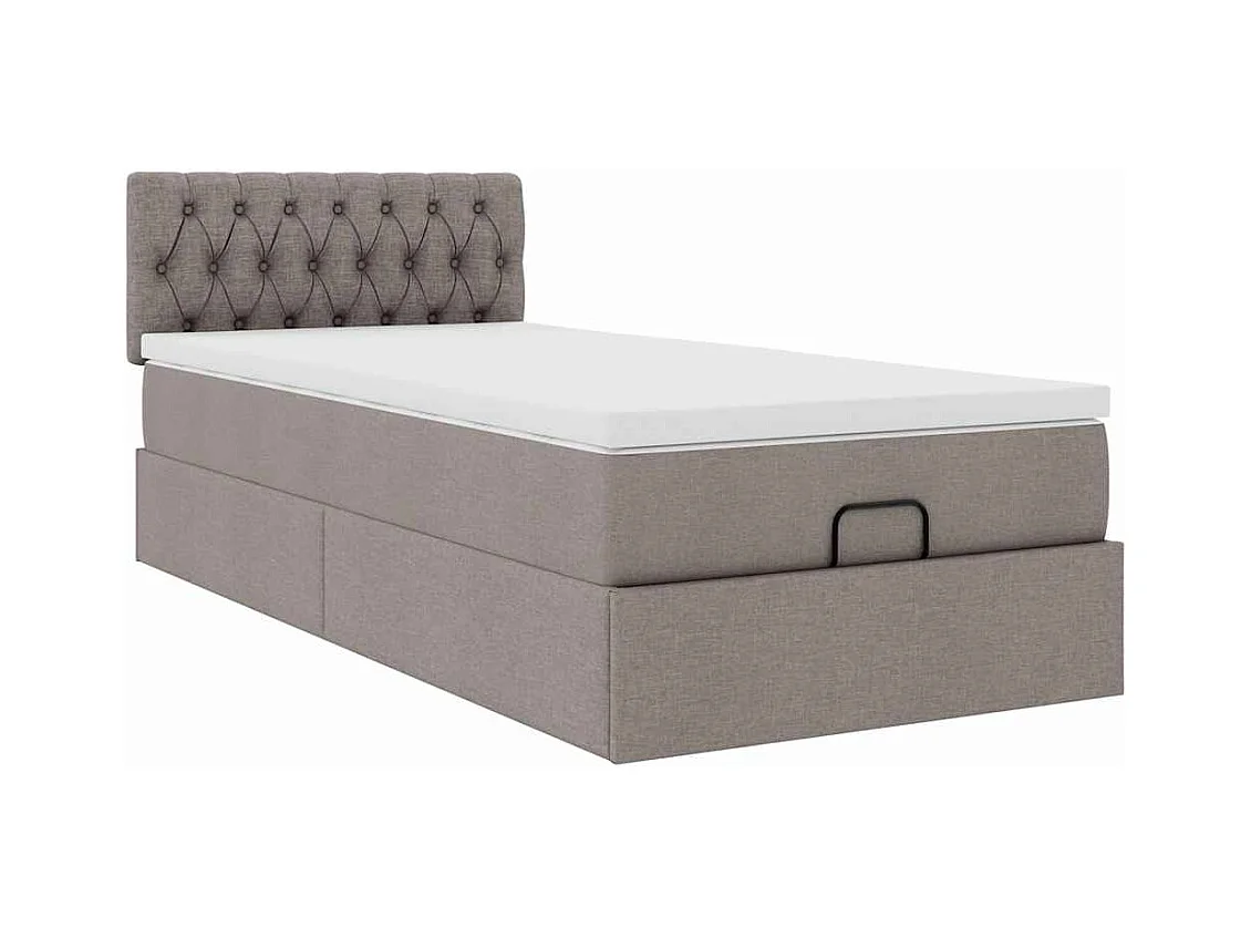 Cadre de lit ottoman avec matelas taupe 100x200 cm tissu