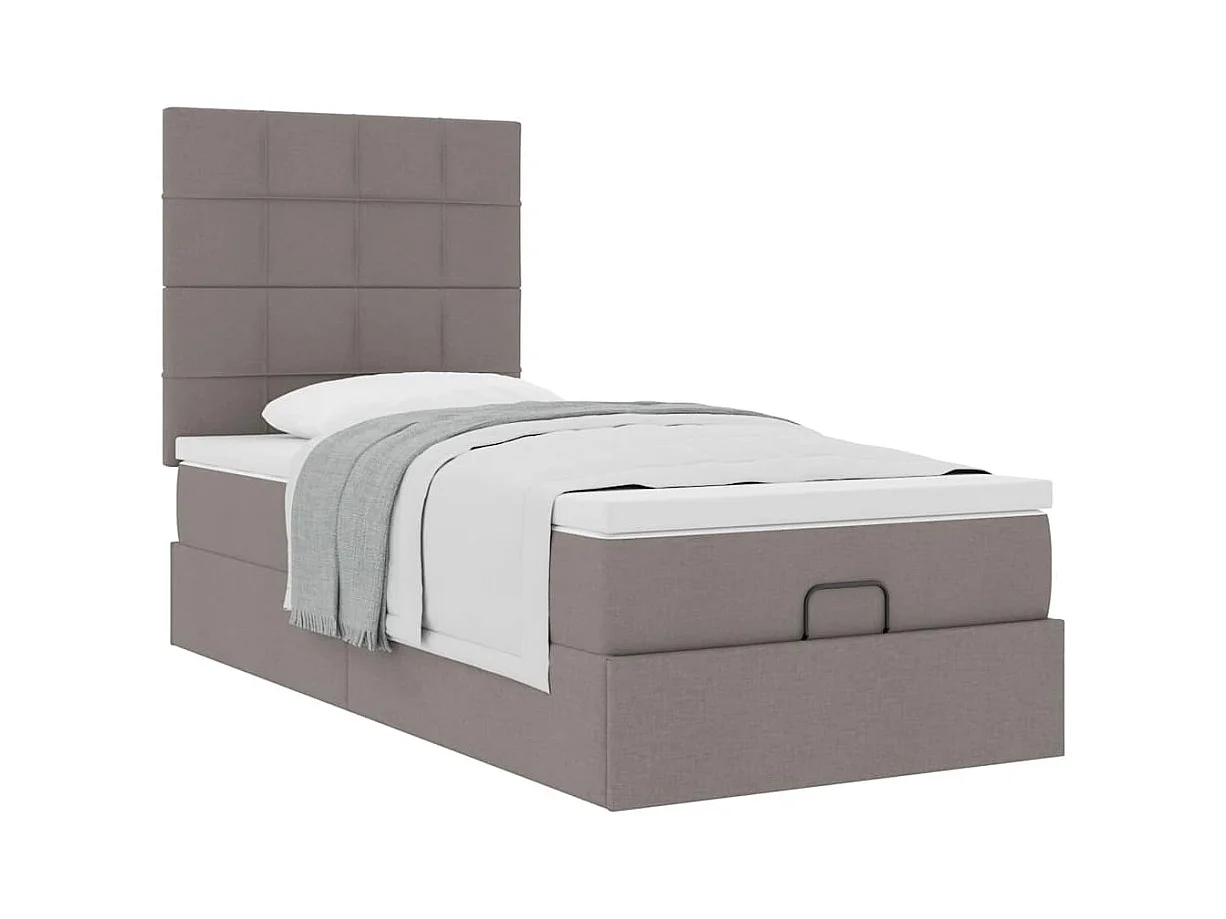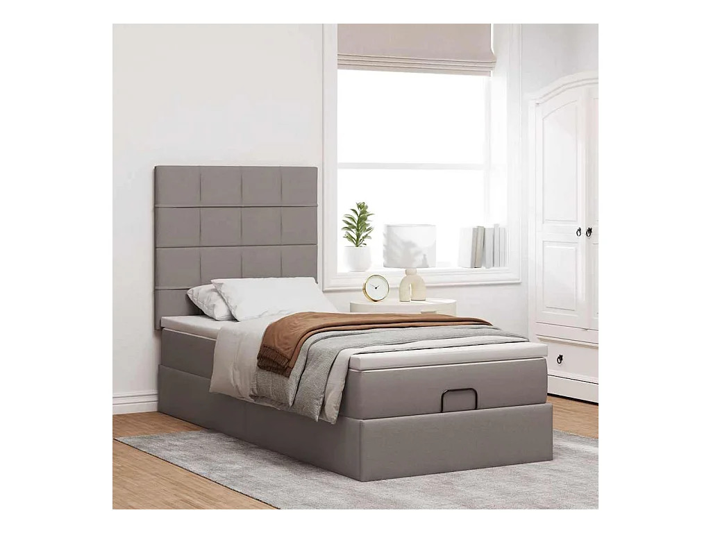 Cadre de lit ottoman avec matelas taupe 100x200 cm tissu