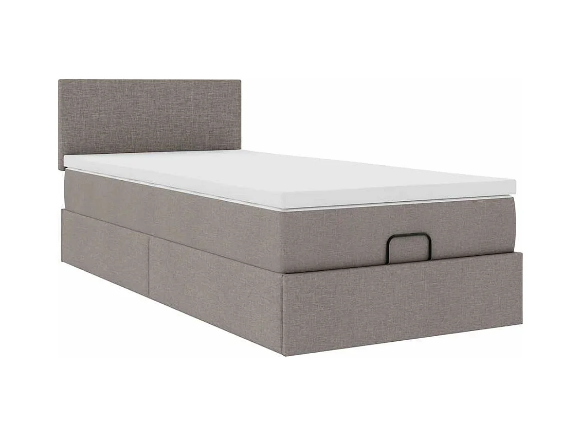 Cadre de lit ottoman avec matelas taupe 100x200 cm tissu