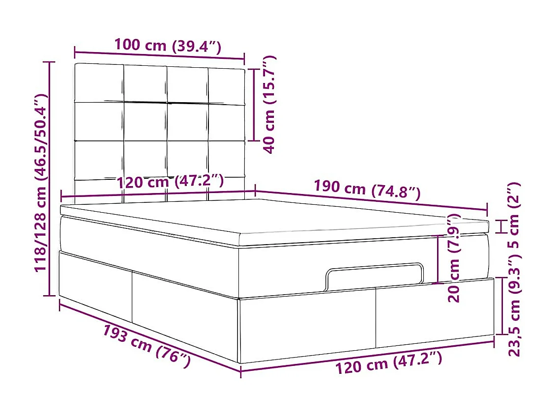 Cadre de lit ottoman avec matelas taupe 120x190 cm tissu