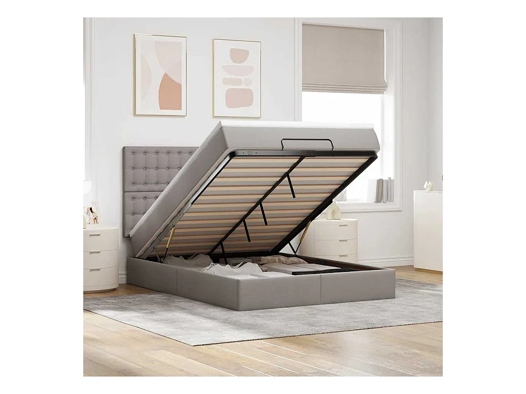 Cadre de lit ottoman avec matelas taupe 140x200 cm tissu