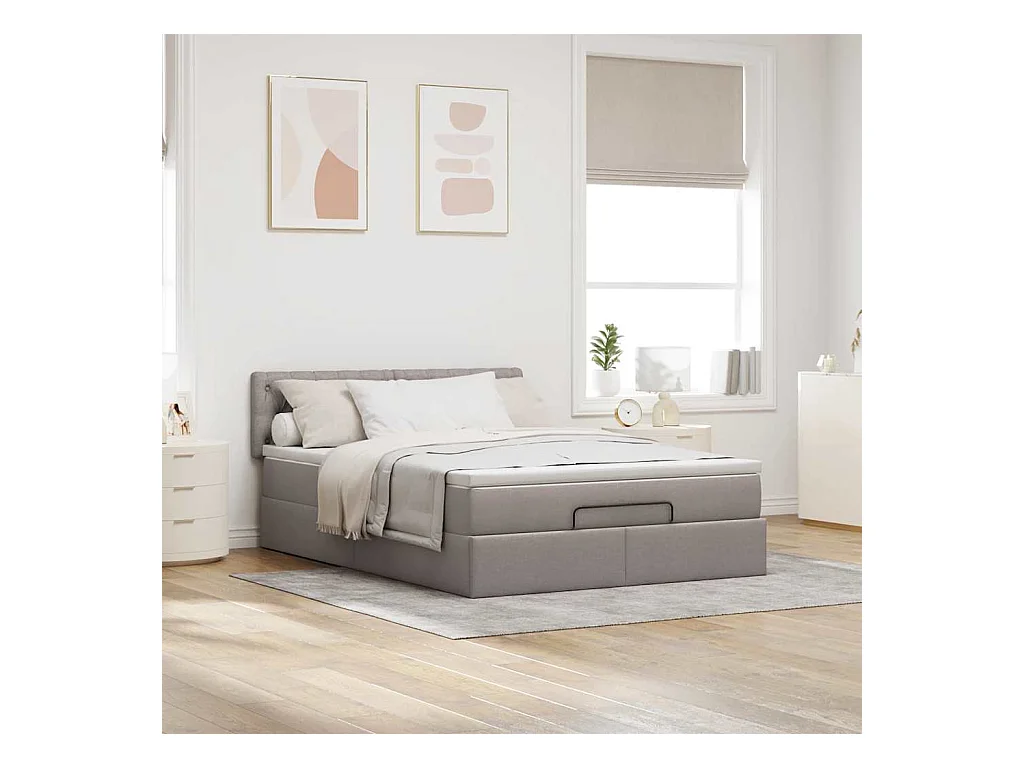 Cadre de lit ottoman avec matelas taupe 140x200 cm tissu
