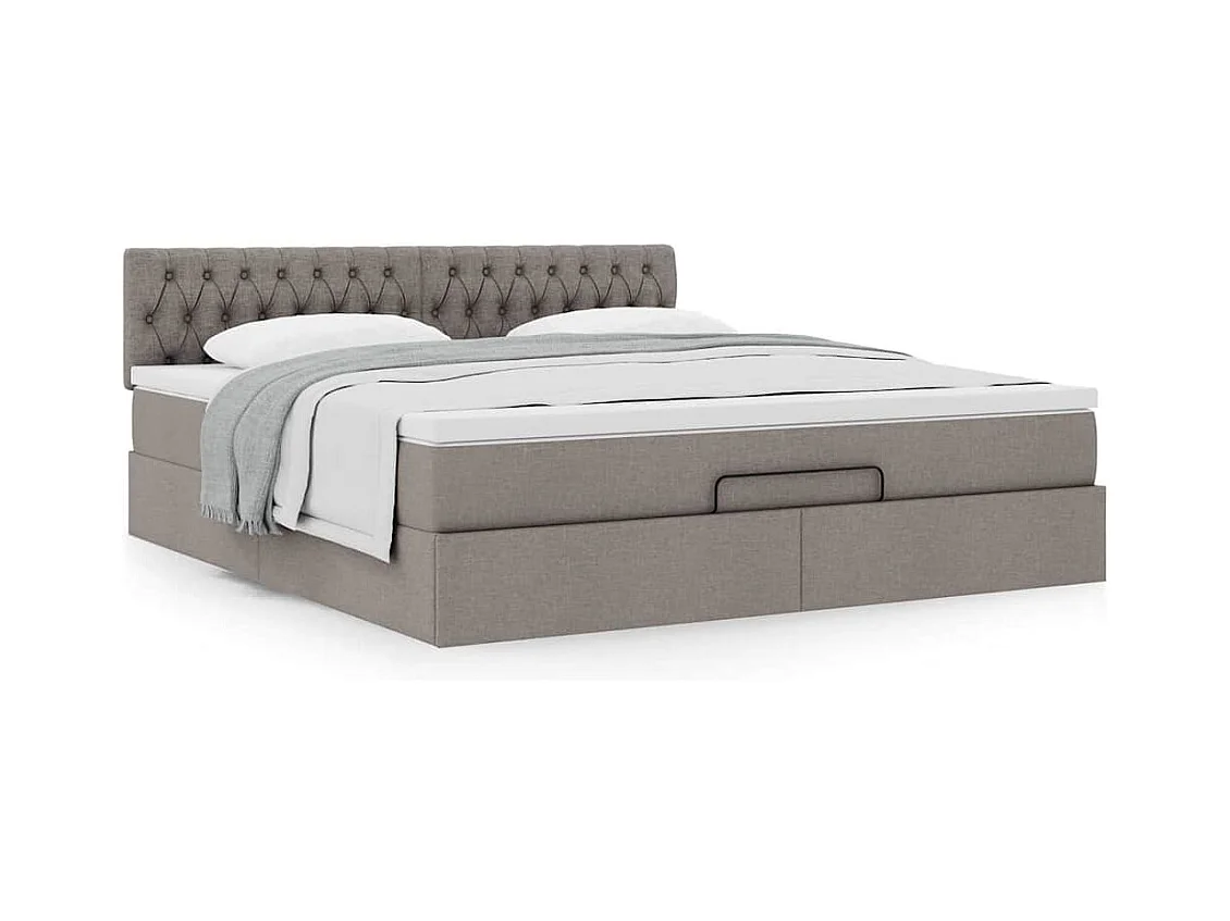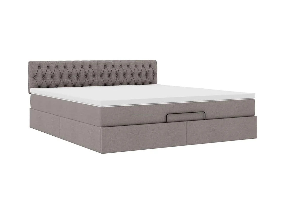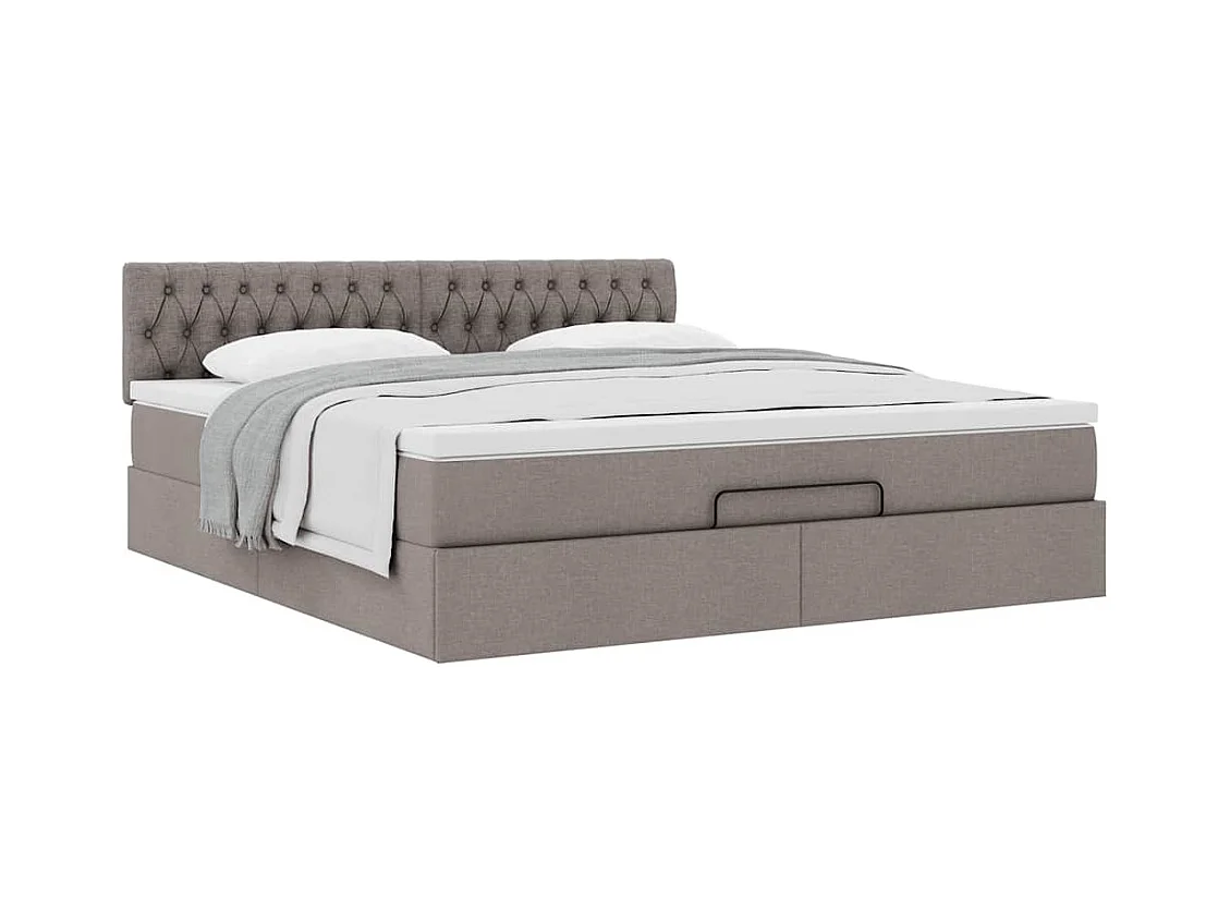 Cadre de lit ottoman avec matelas taupe 160x200 cm tissu