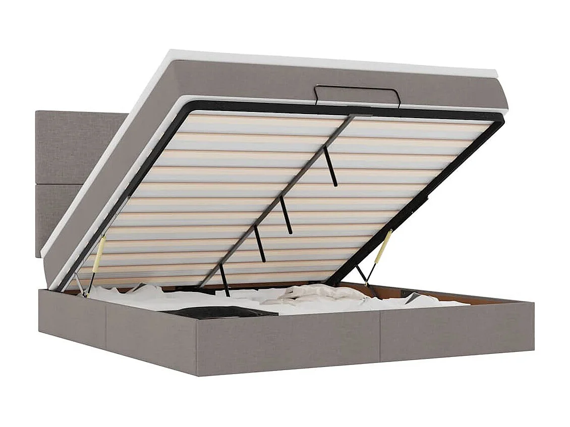 Cadre de lit ottoman avec matelas taupe 180x200 cm tissu