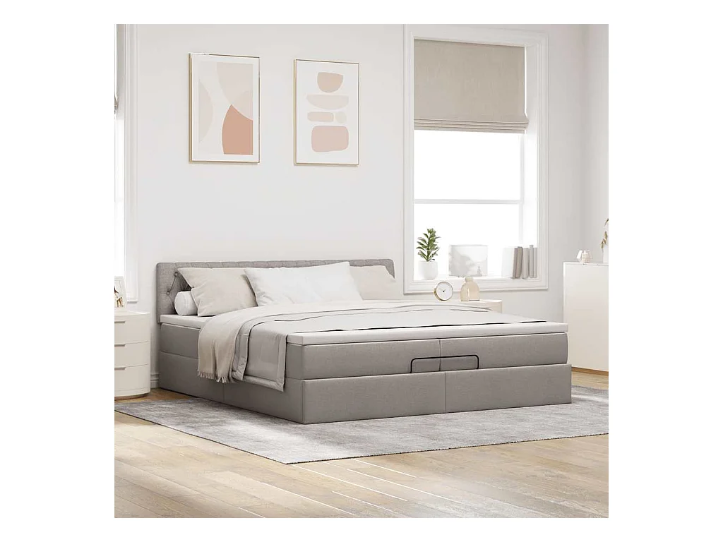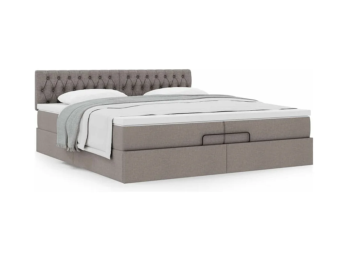 Cadre de lit ottoman avec matelas taupe 200x200 cm tissu