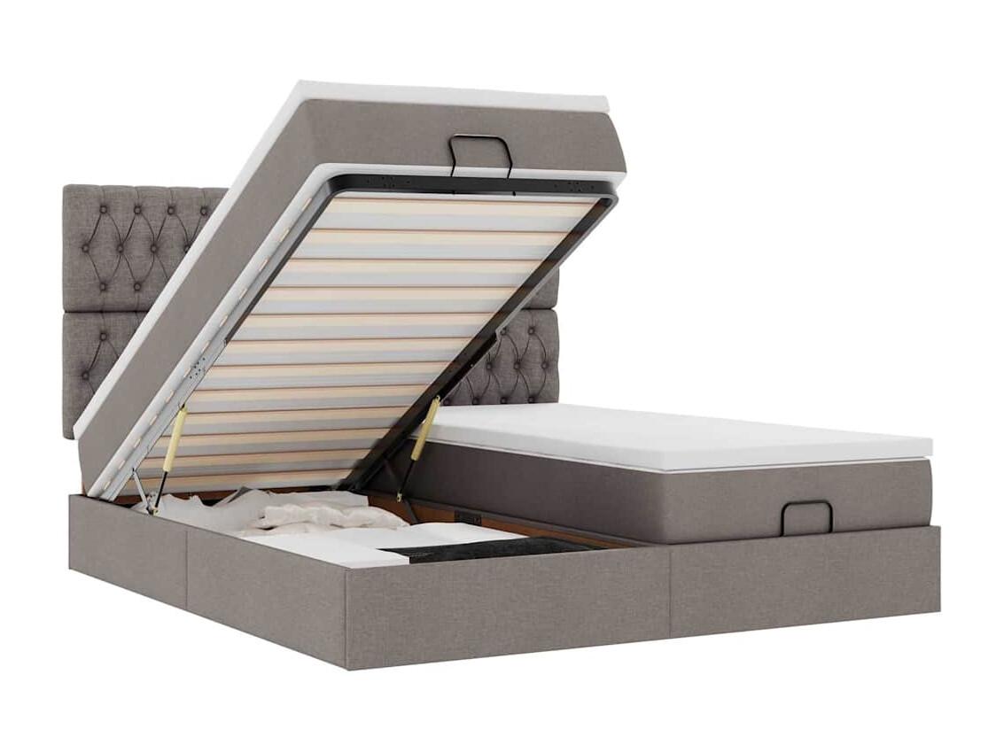 Cadre de lit ottoman avec matelas taupe 200x200cm tissu