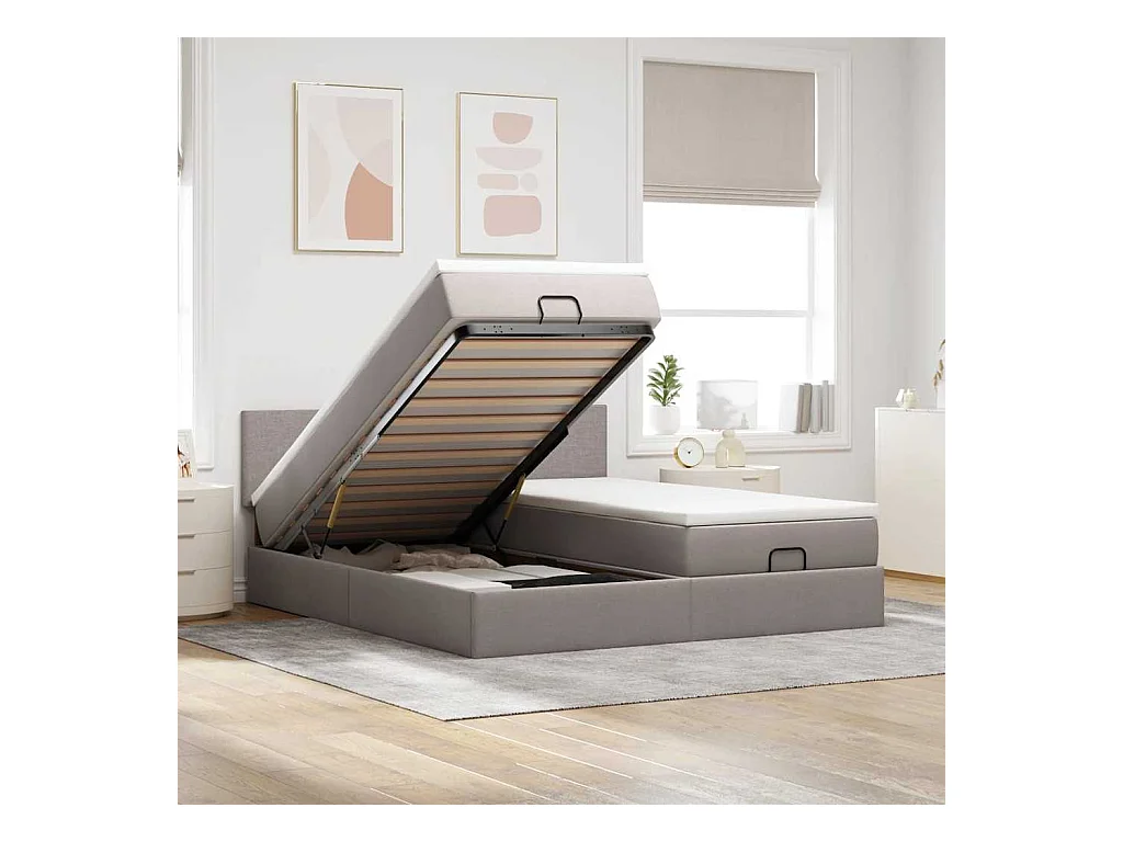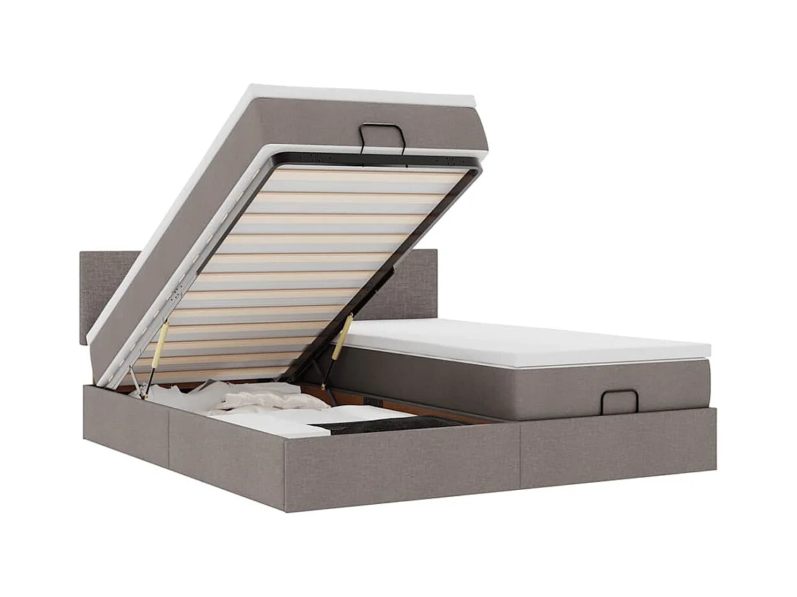 Cadre de lit ottoman avec matelas taupe 200x200cm tissu