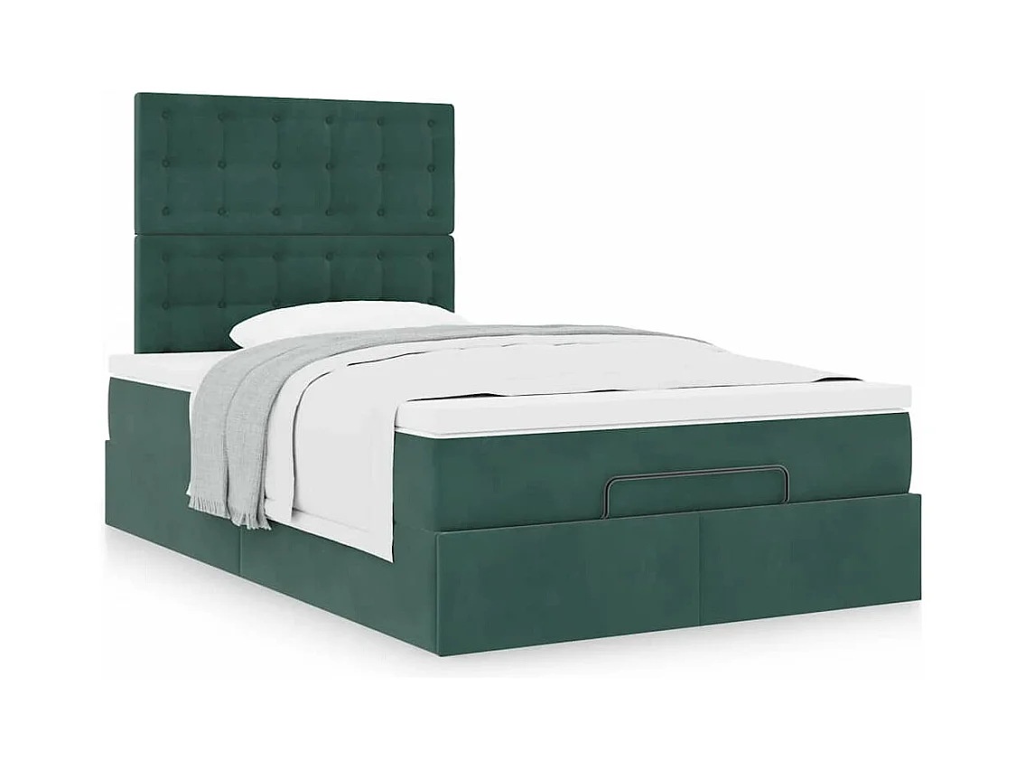 Cadre de lit ottoman avec matelas vert foncé 120x200 cm velours