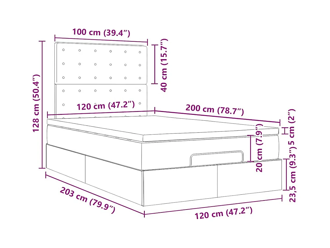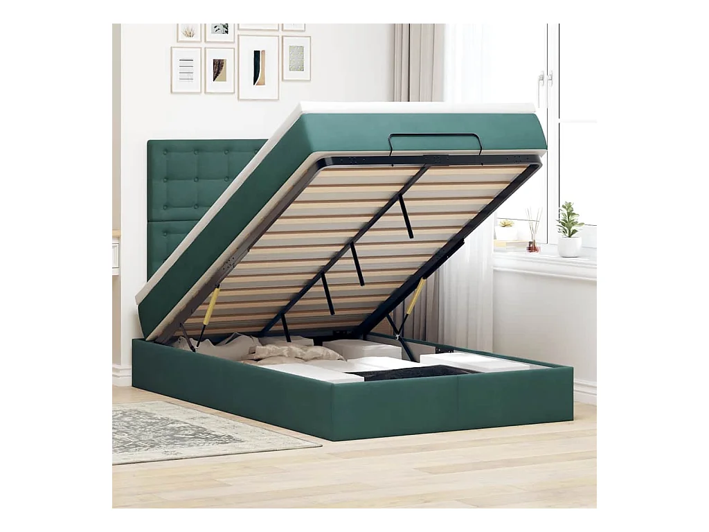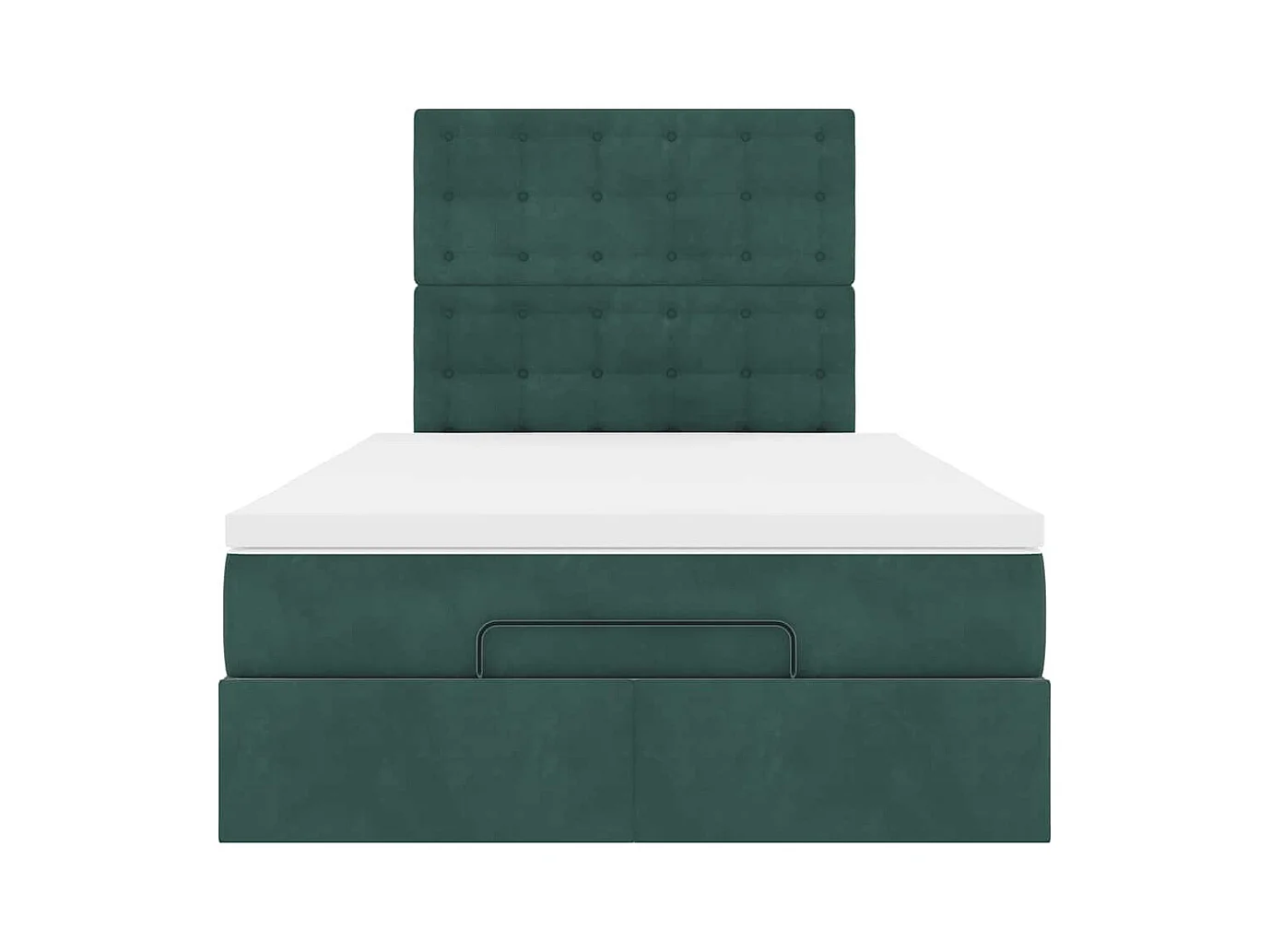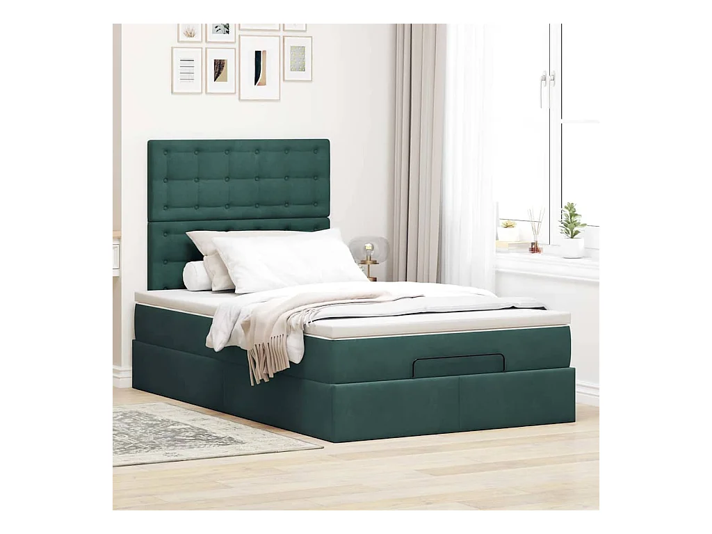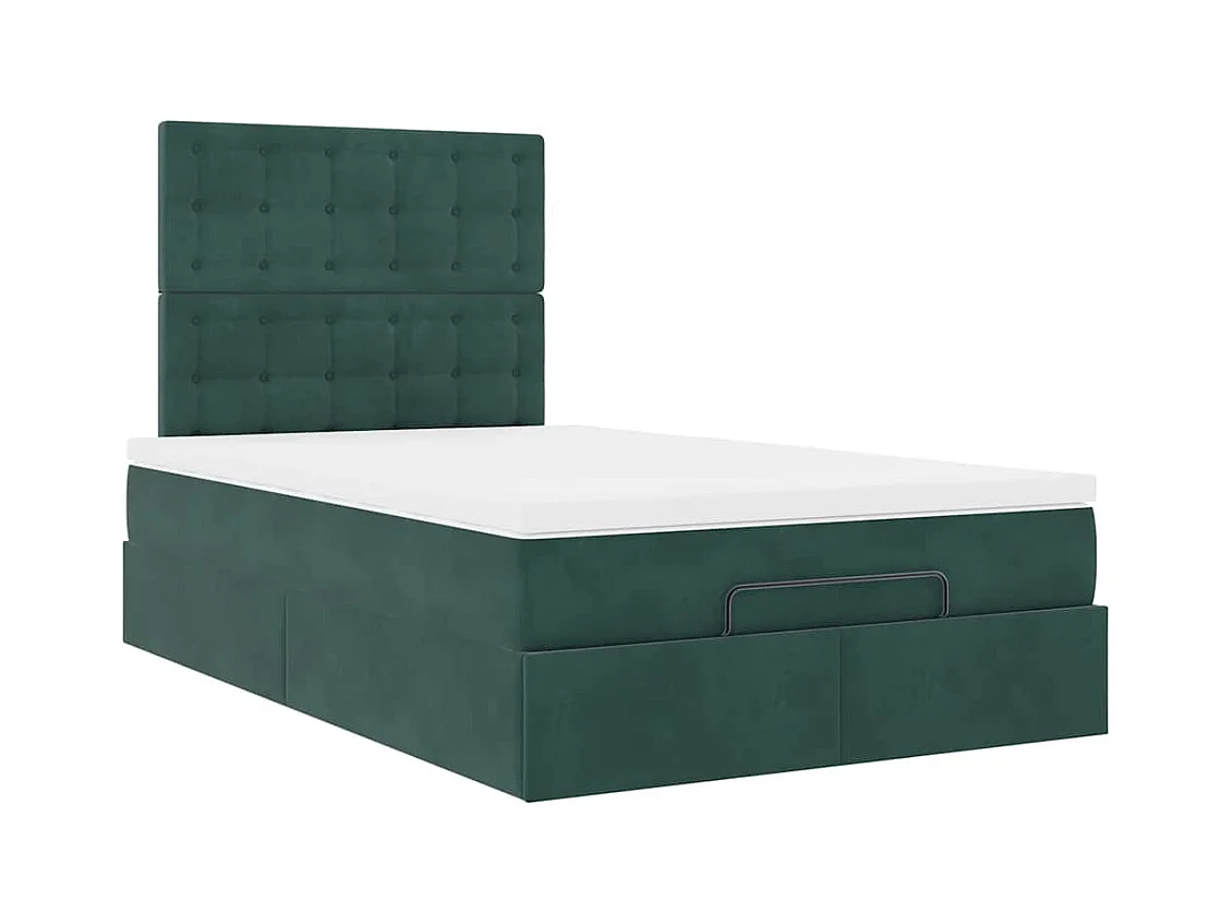 Cadre de lit ottoman avec matelas vert foncé 120x200 cm velours