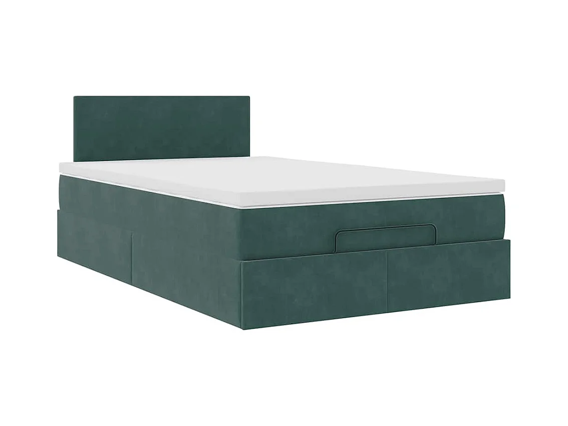 Cadre de lit ottoman avec matelas vert foncé 120x200 cm velours