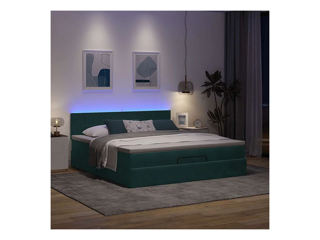 Cadre de lit ottoman sans matelas vert foncé 140x200 cm velours