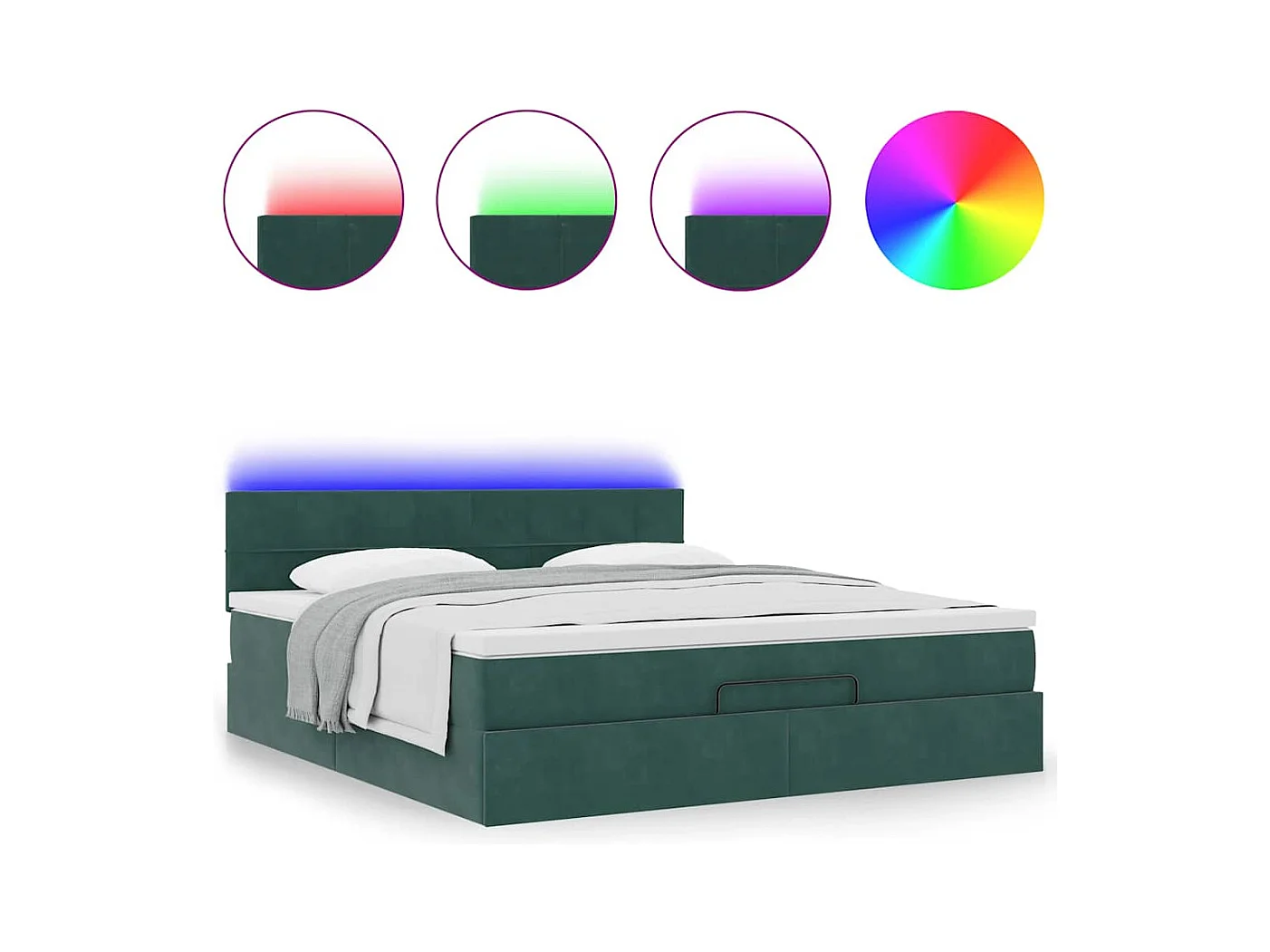 Cadre de lit ottoman avec matelas vert foncé 160x200 cm velours