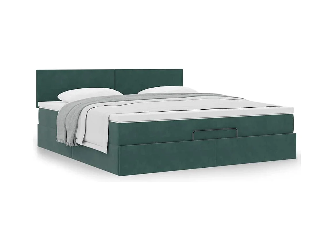 Cadre de lit ottoman avec matelas vert foncé 160x200 cm velours