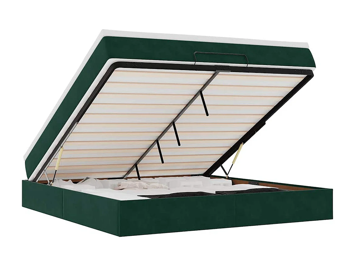 Cadre de lit ottoman avec matelas vert foncé 160x200 cm velours