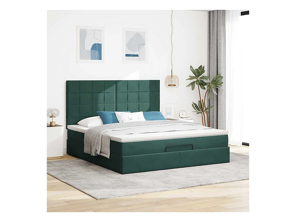 Cadre de lit ottoman avec matelas vert foncé 160x200 cm velours