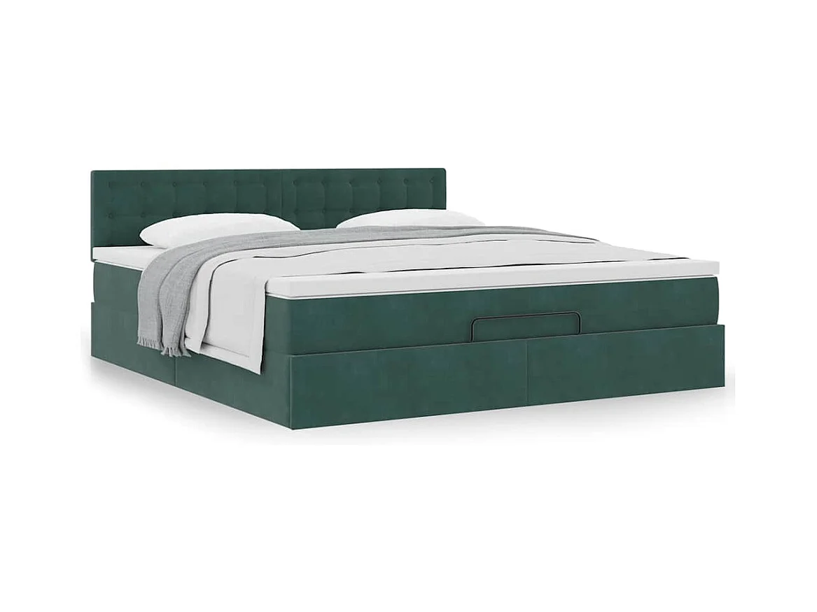 Cadre de lit ottoman avec matelas vert foncé 160x200 cm velours