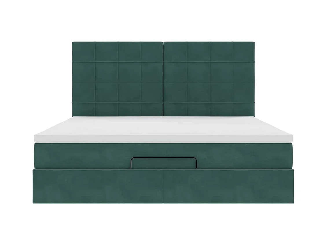 Cadre de lit ottoman avec matelas vert foncé 160x200 cm velours