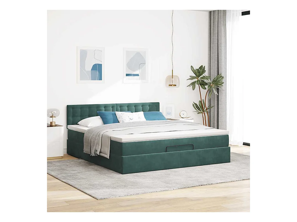 Cadre de lit ottoman avec matelas vert foncé 160x200 cm velours