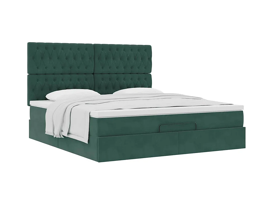 Cadre de lit ottoman avec matelas vert foncé 160x200 cm velours