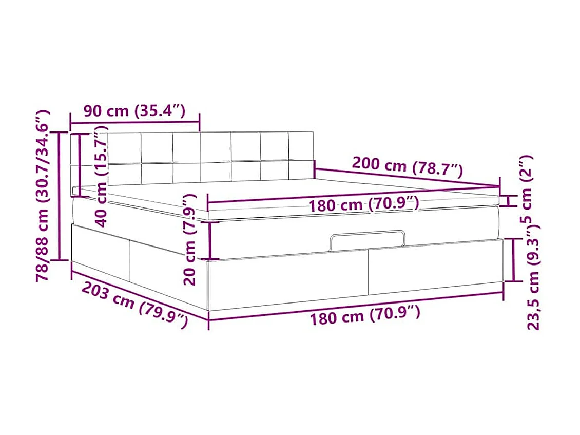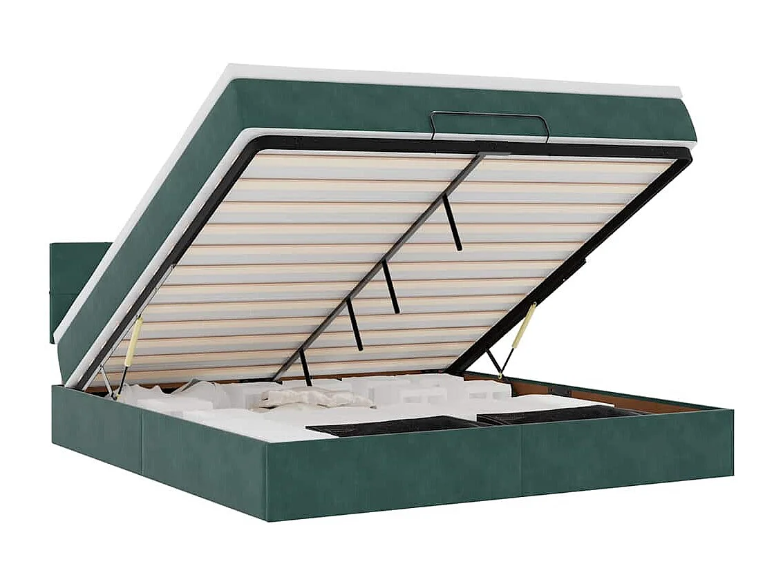 Cadre de lit ottoman avec matelas vert foncé 180x200 cm velours