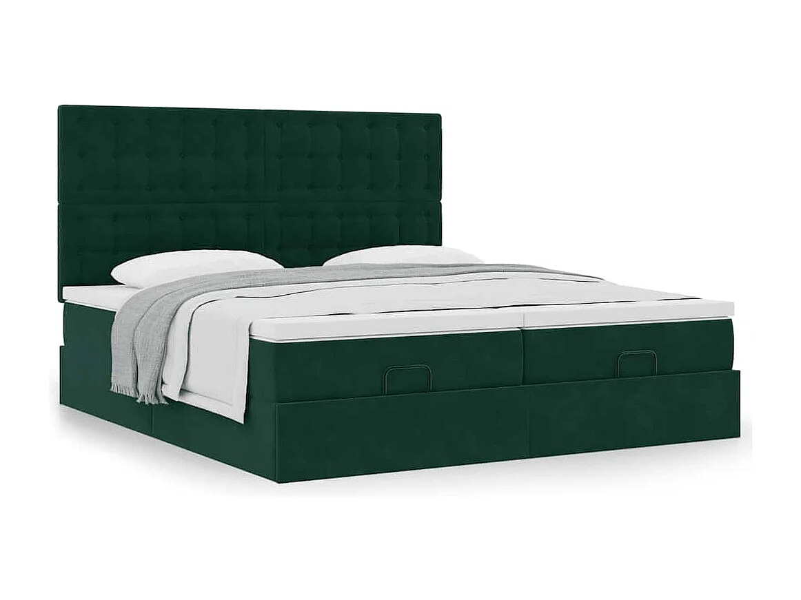 Cadre de lit ottoman avec matelas vert foncé 180x200cm velours