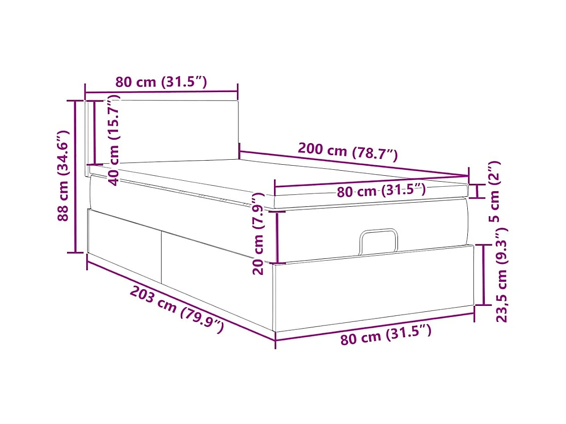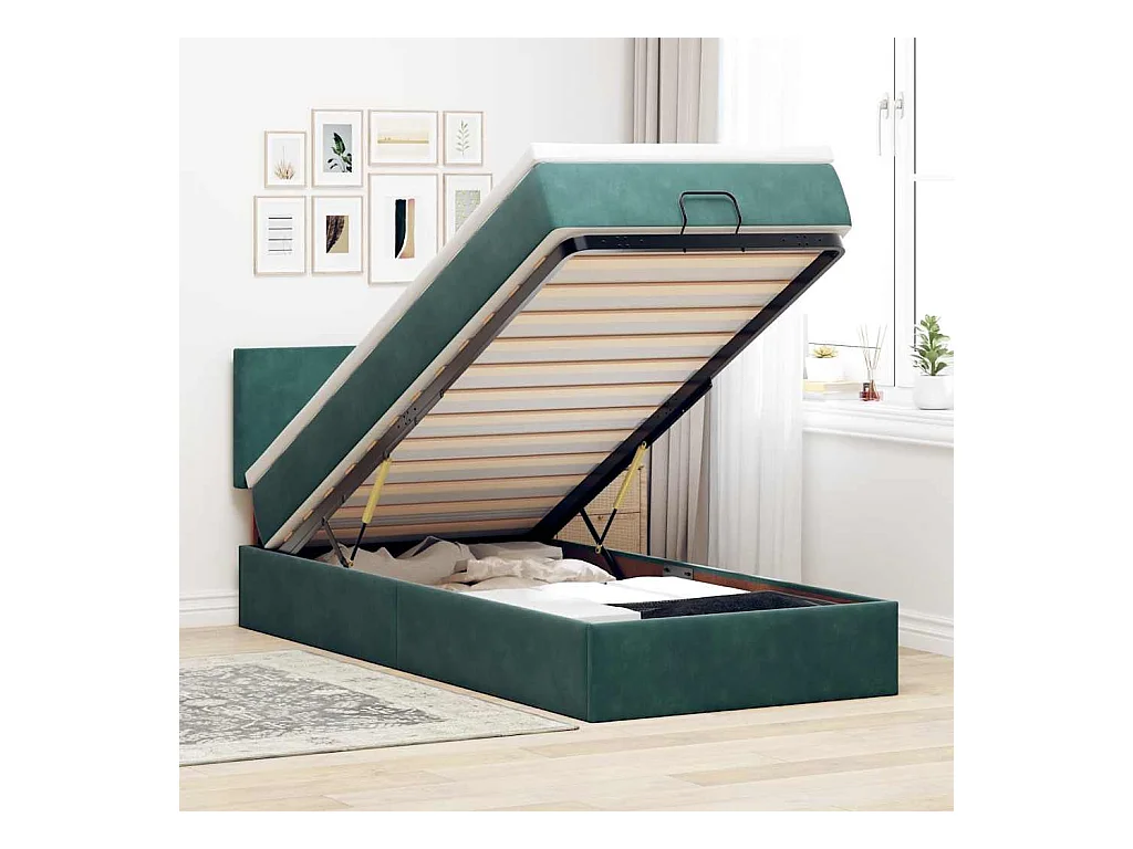 Cadre de lit ottoman avec matelas vert foncé 80x200 cm velours