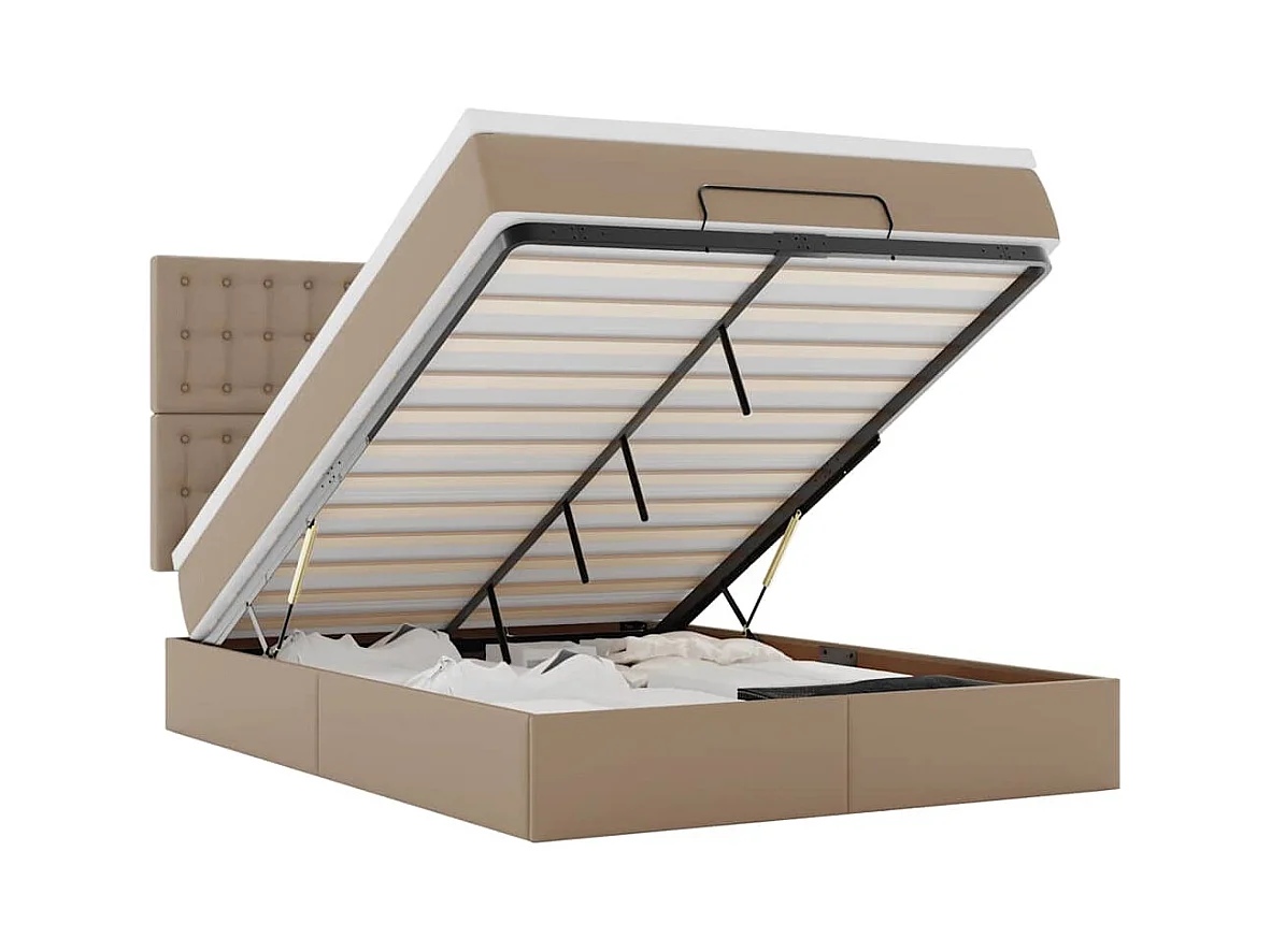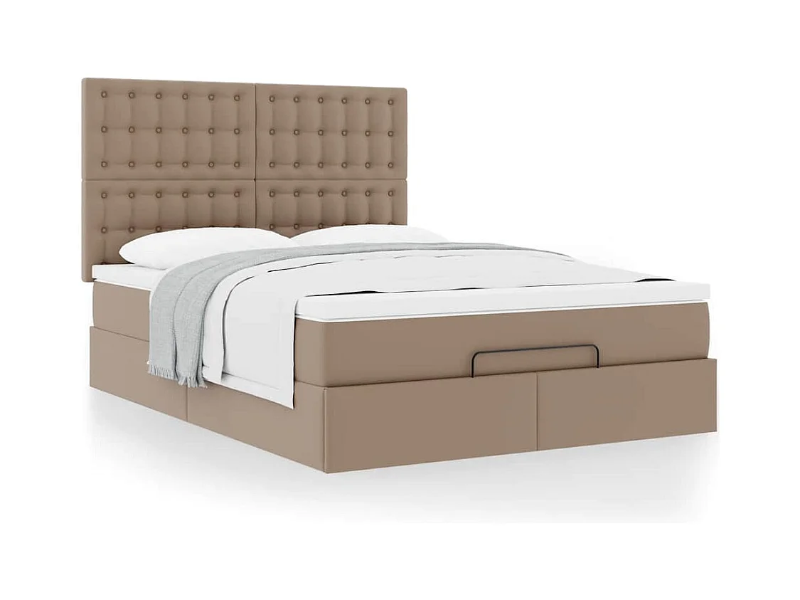 Cadre de lit ottoman et matelas cappuccino 140x190cm similicuir