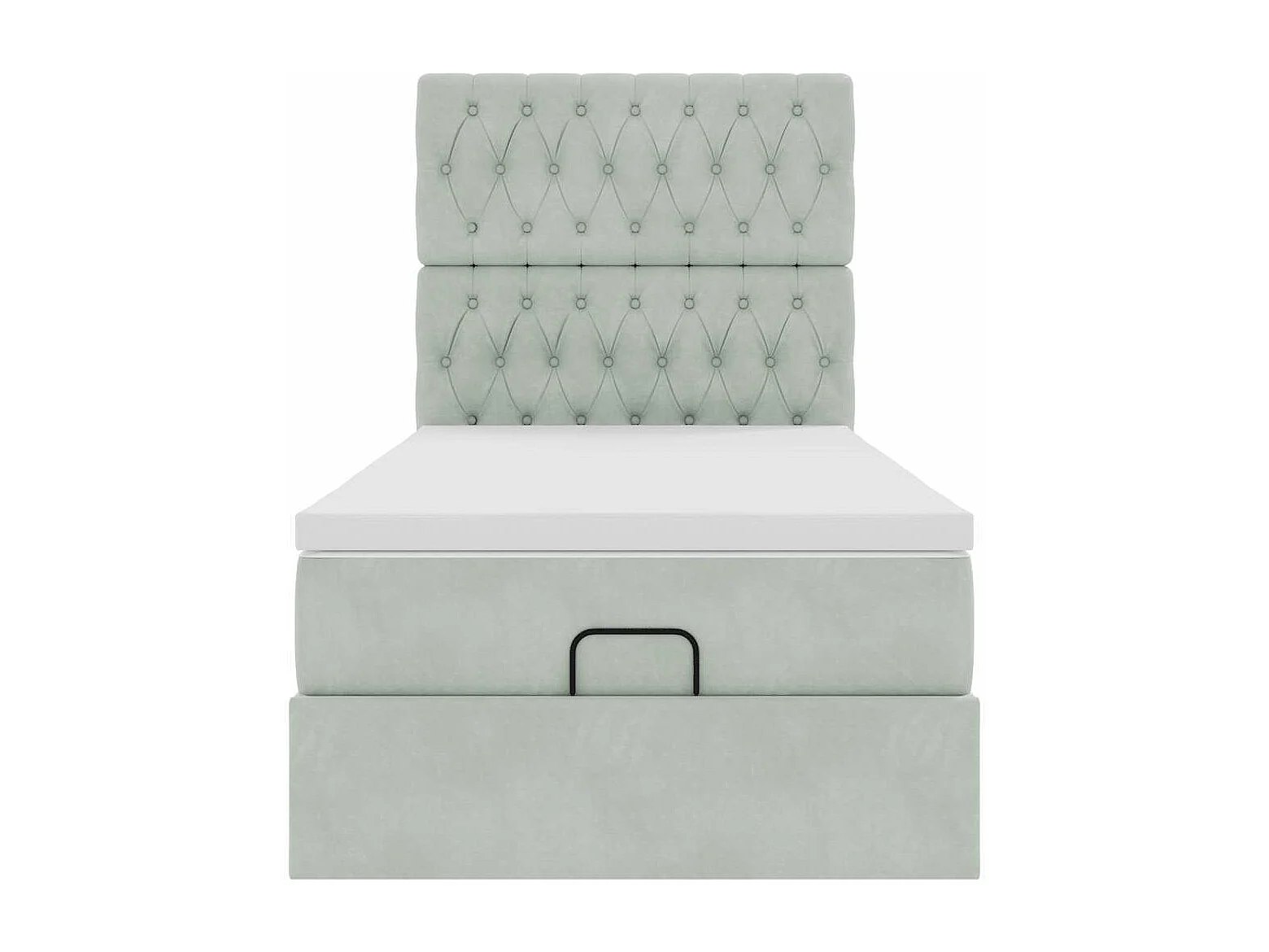 Cadre de lit ottoman et matelas gris clair 100x200 cm velours