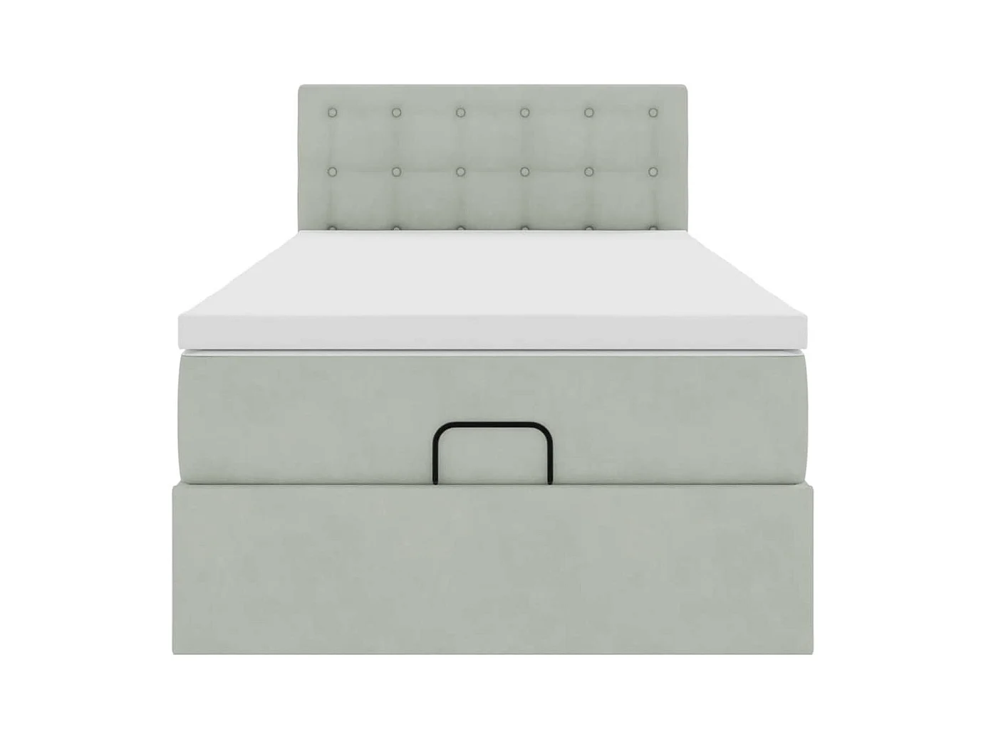 Cadre de lit ottoman et matelas gris clair 100x200 cm velours