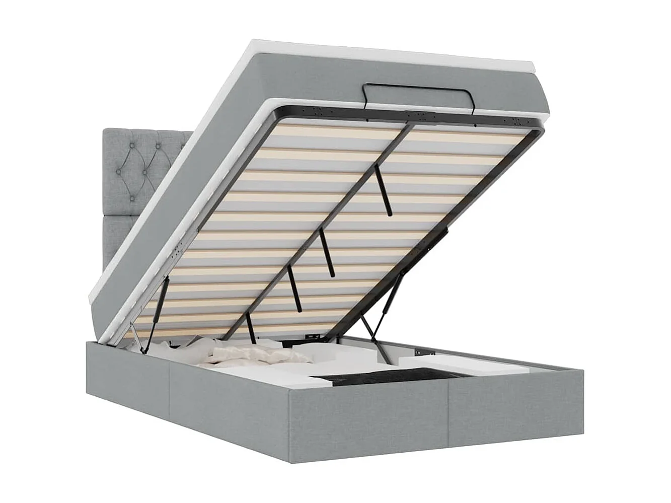 Cadre de lit ottoman et matelas gris clair 120x200 cm tissu