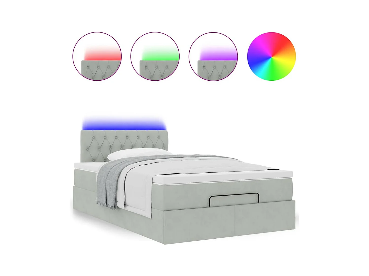 Cadre de lit ottoman et matelas gris clair 120x200 cm velours