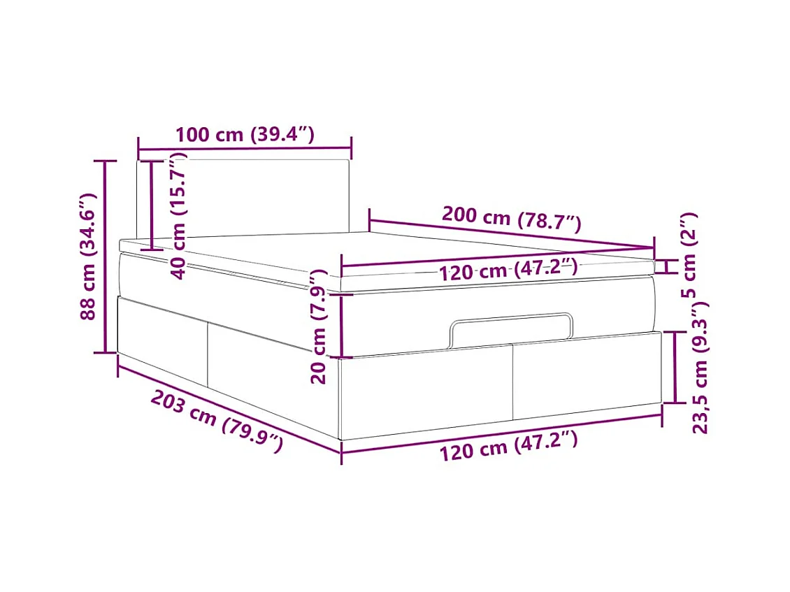 Cadre de lit ottoman avec matelas gris 120x200 cm similicuir
