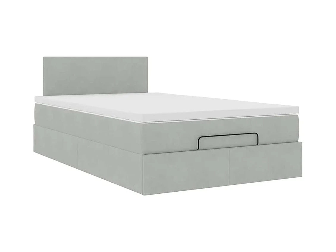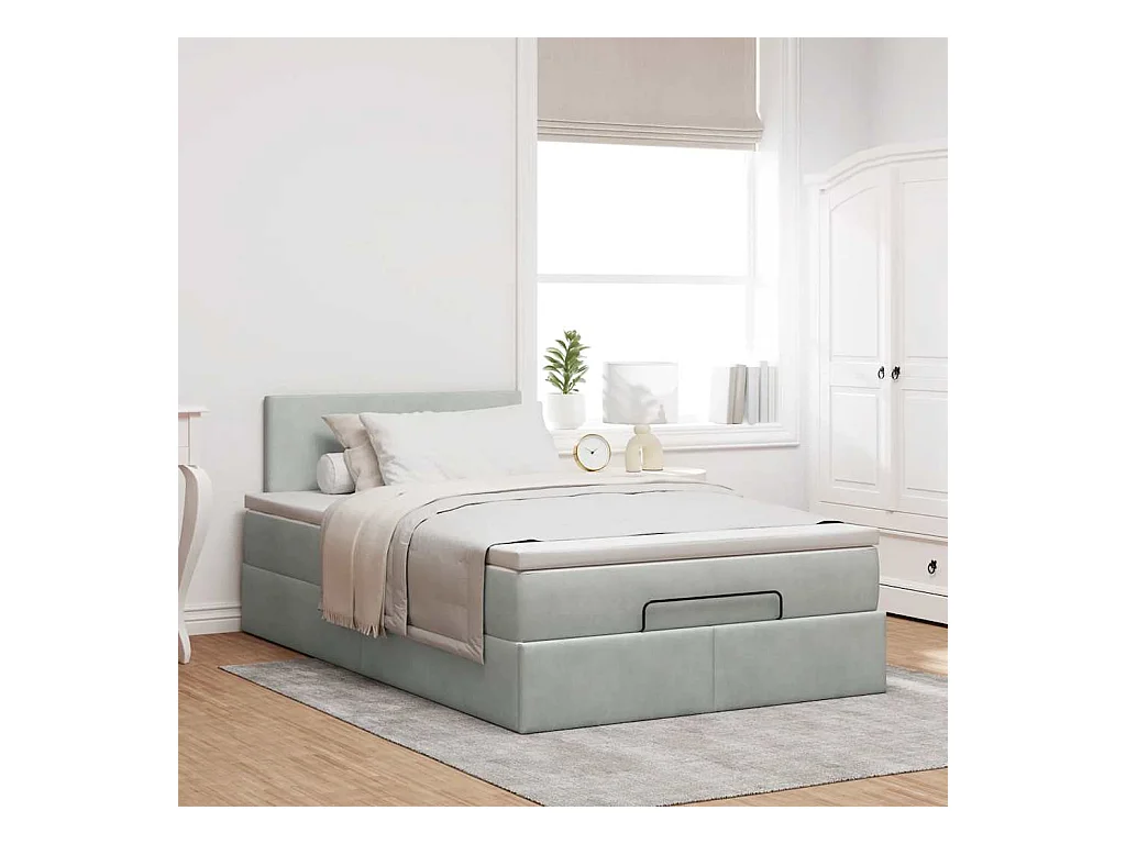 Cadre de lit ottoman et matelas gris clair 120x200 cm velours