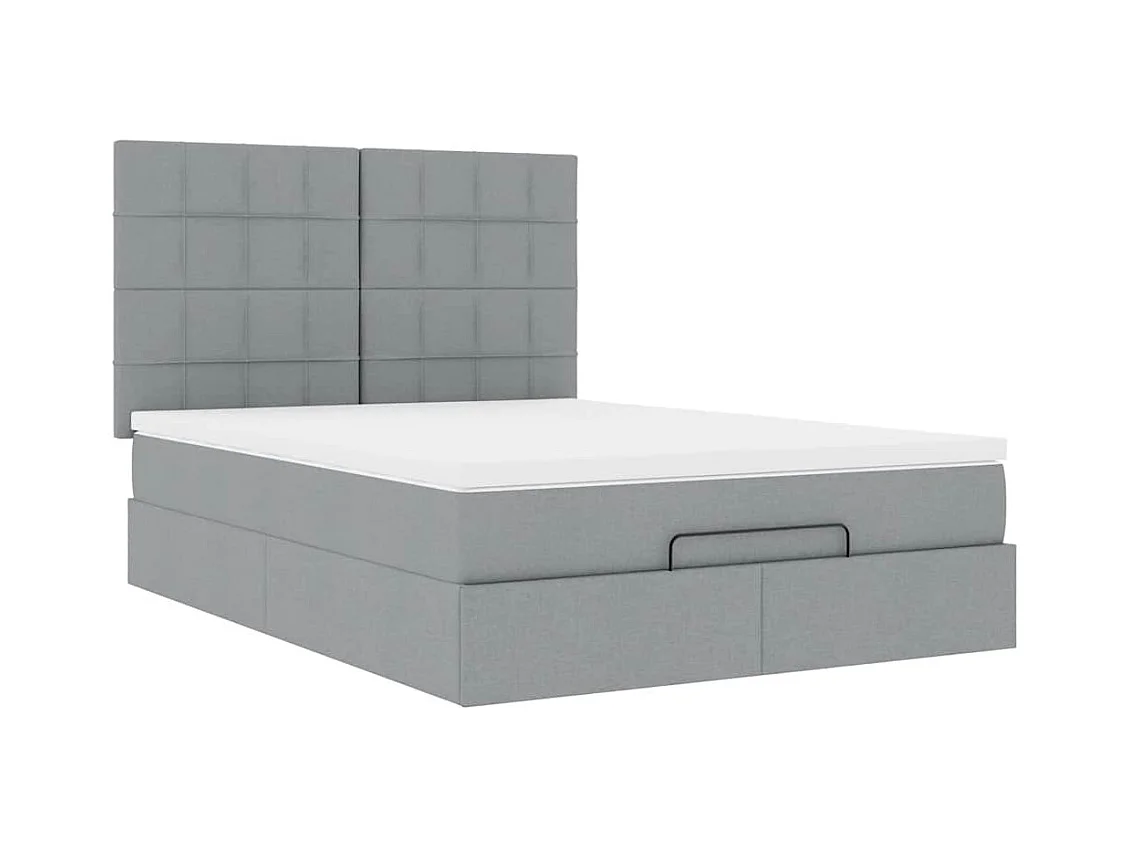 Cadre de lit ottoman et matelas gris clair 140x190 cm tissu