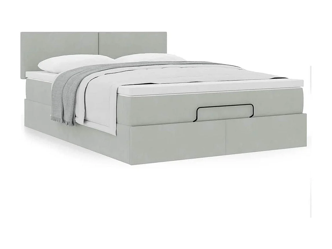 Cadre de lit ottoman et matelas gris clair 140x190 velours