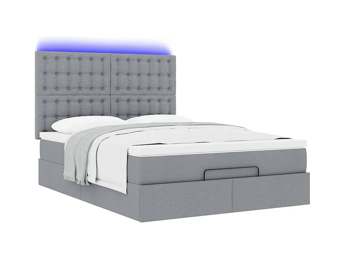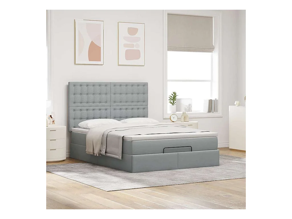 Cadre de lit ottoman et matelas gris clair 140x200 cm tissu