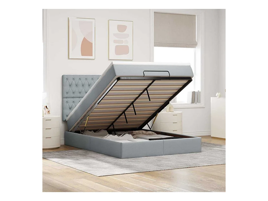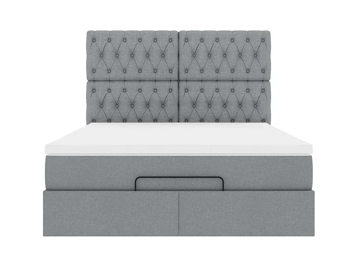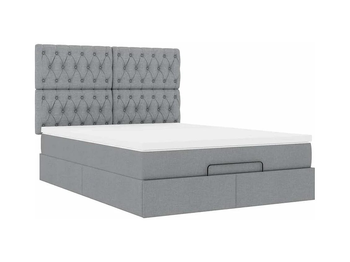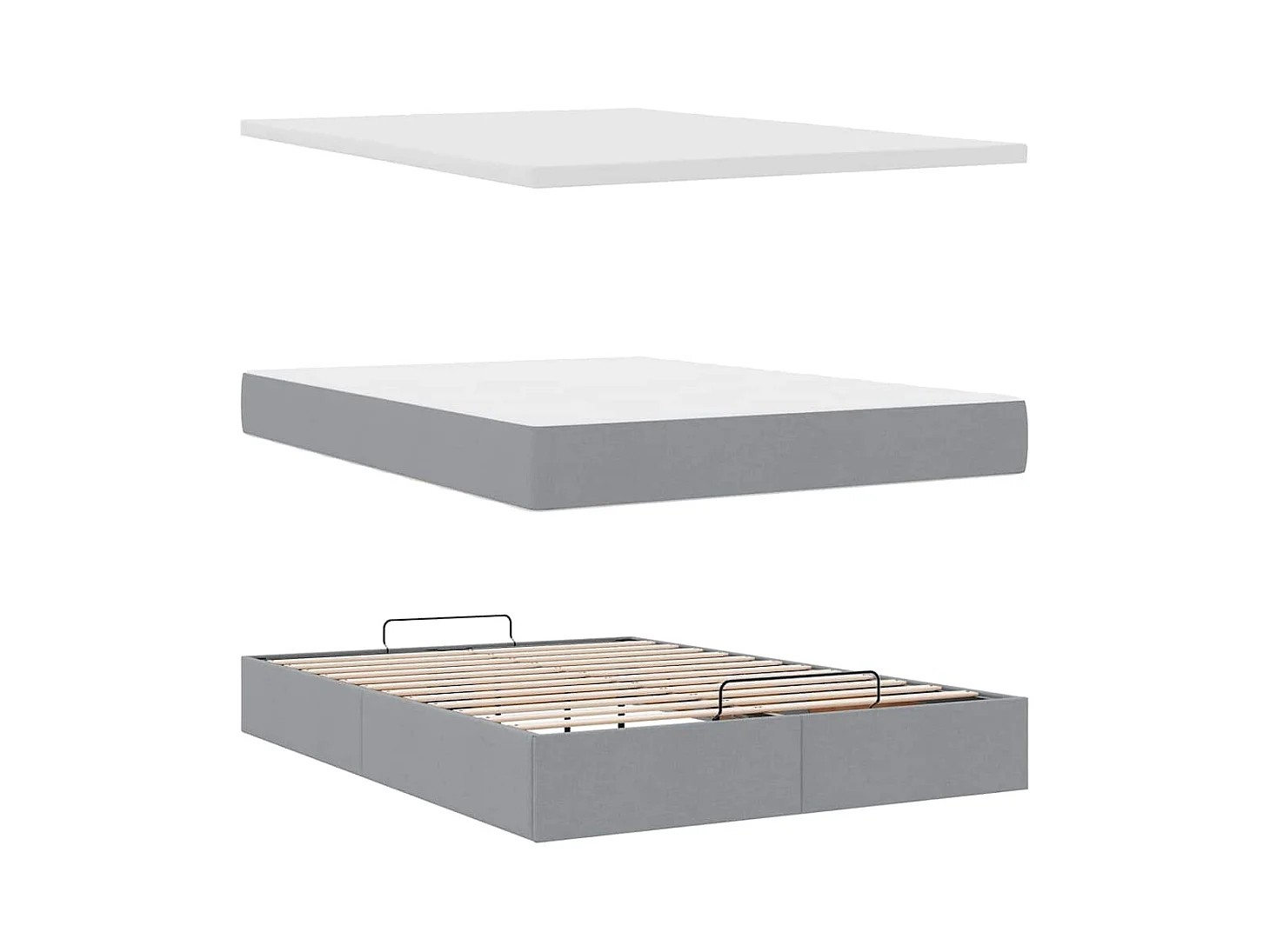 Cadre de lit ottoman et matelas gris clair 140x200 cm tissu