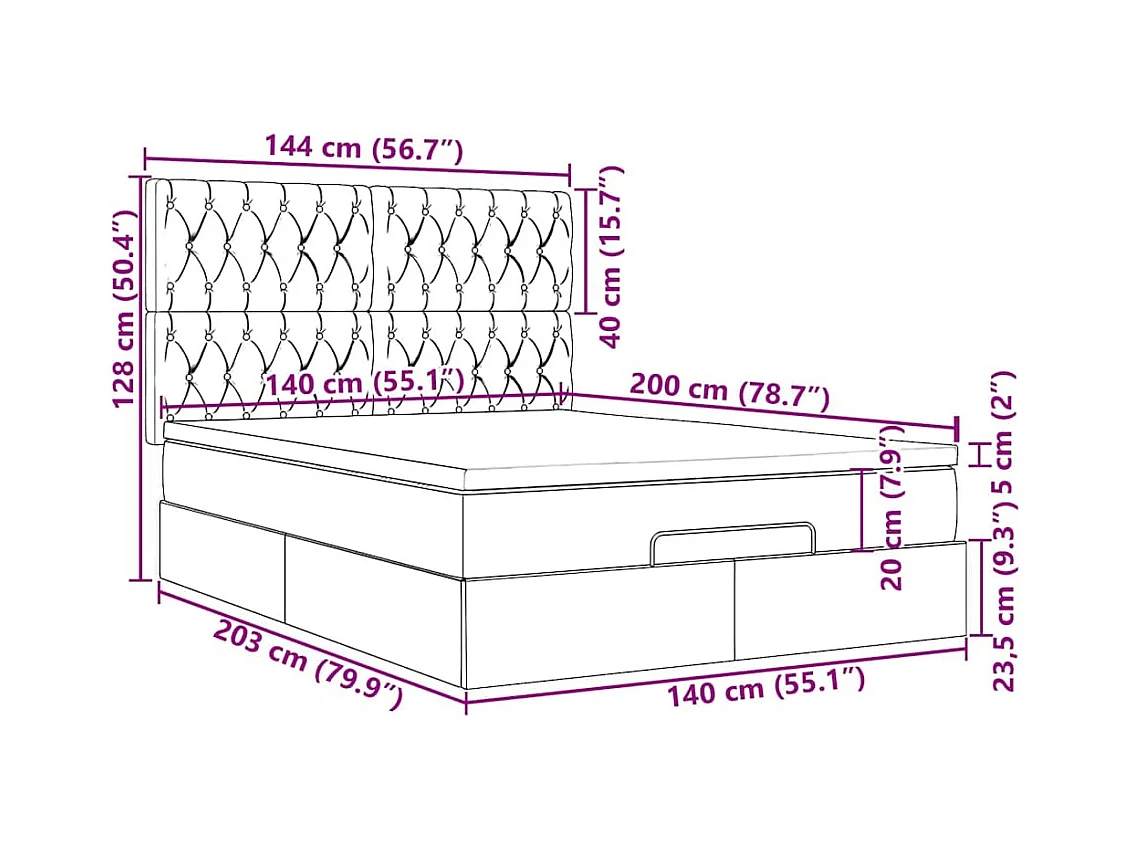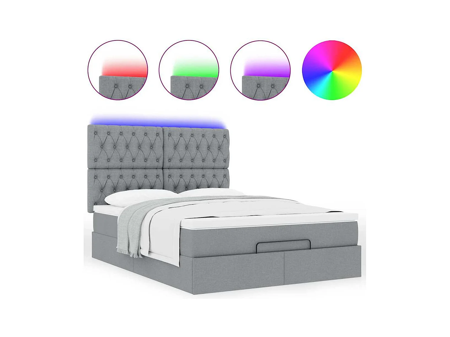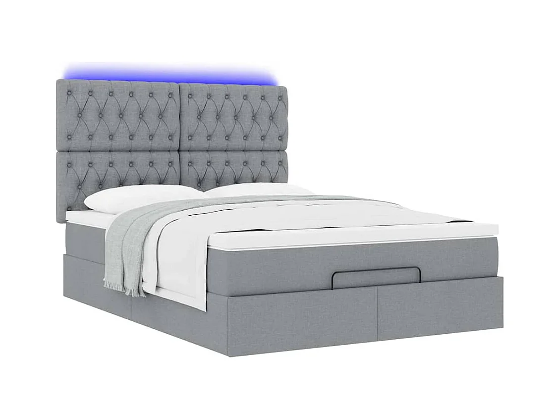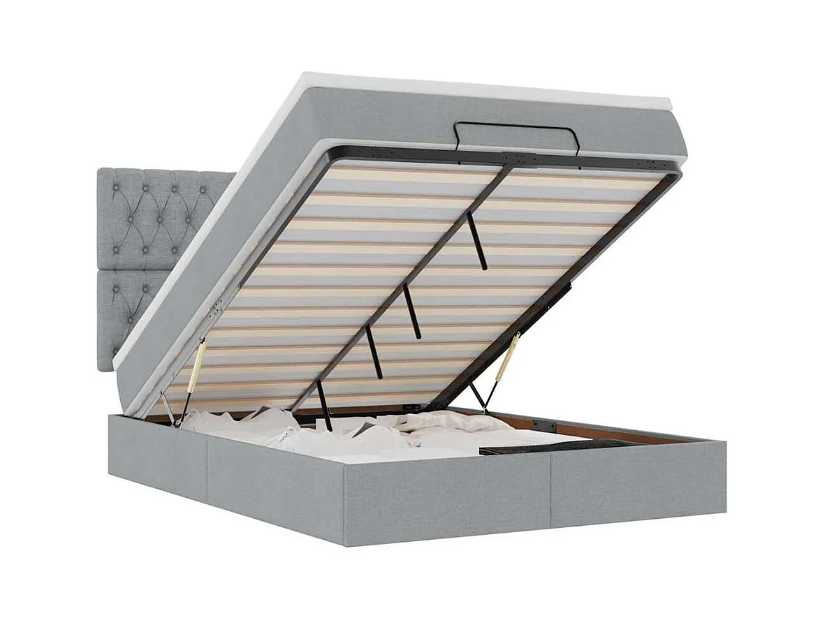 Cadre de lit ottoman et matelas gris clair 140x200 cm tissu