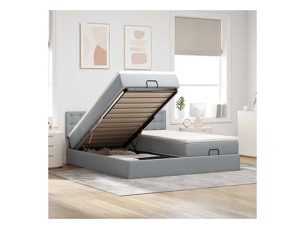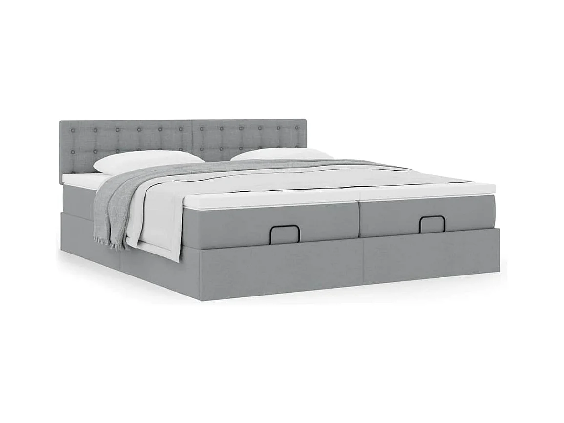 Cadre de lit ottoman et matelas gris clair 160x200cm tissu