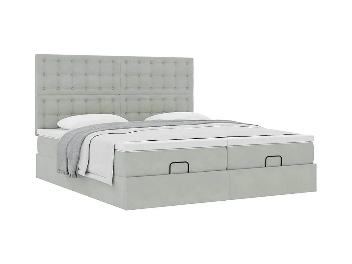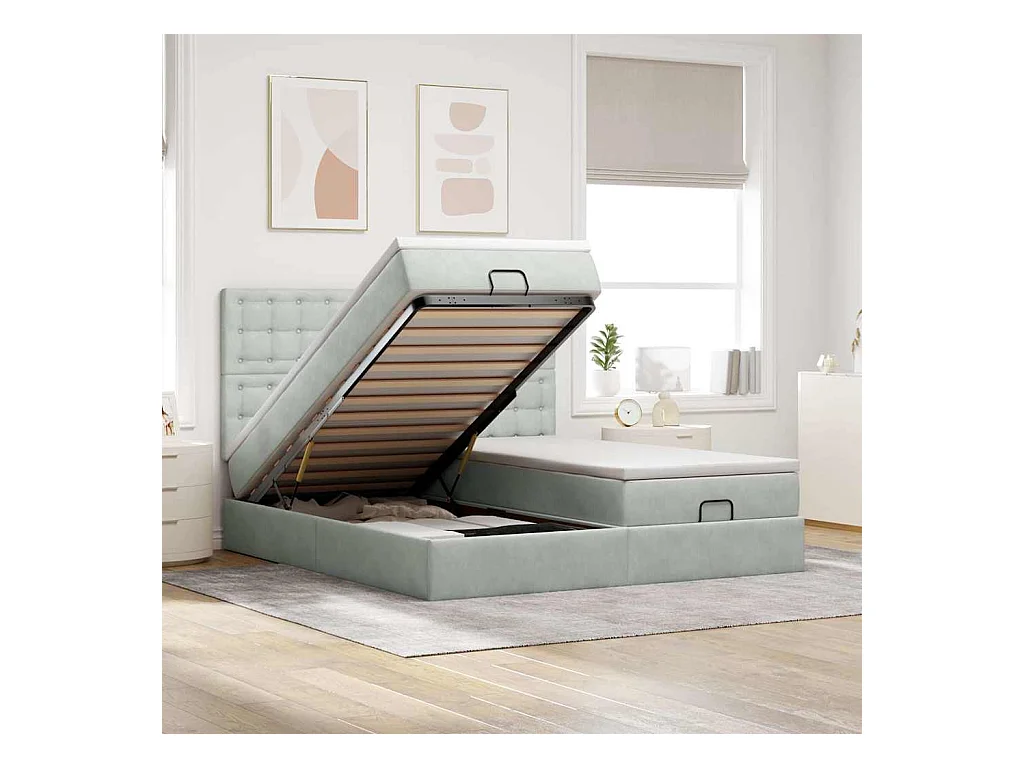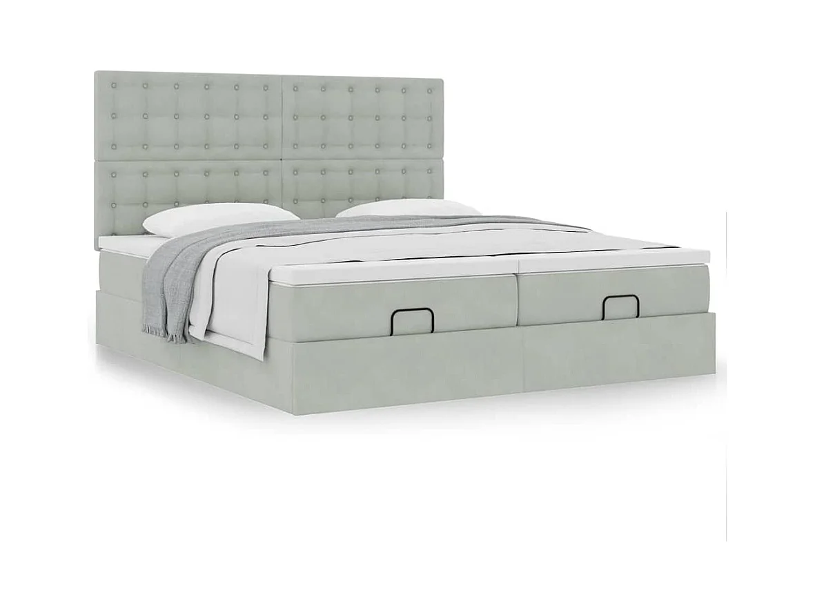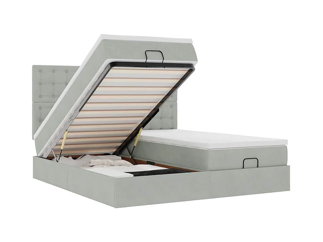 Cadre de lit ottoman et matelas gris clair 160x200cm velours