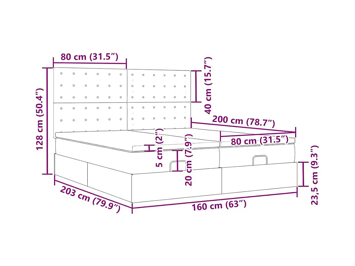 Cadre de lit ottoman avec matelas gris foncé 160x200cm velours