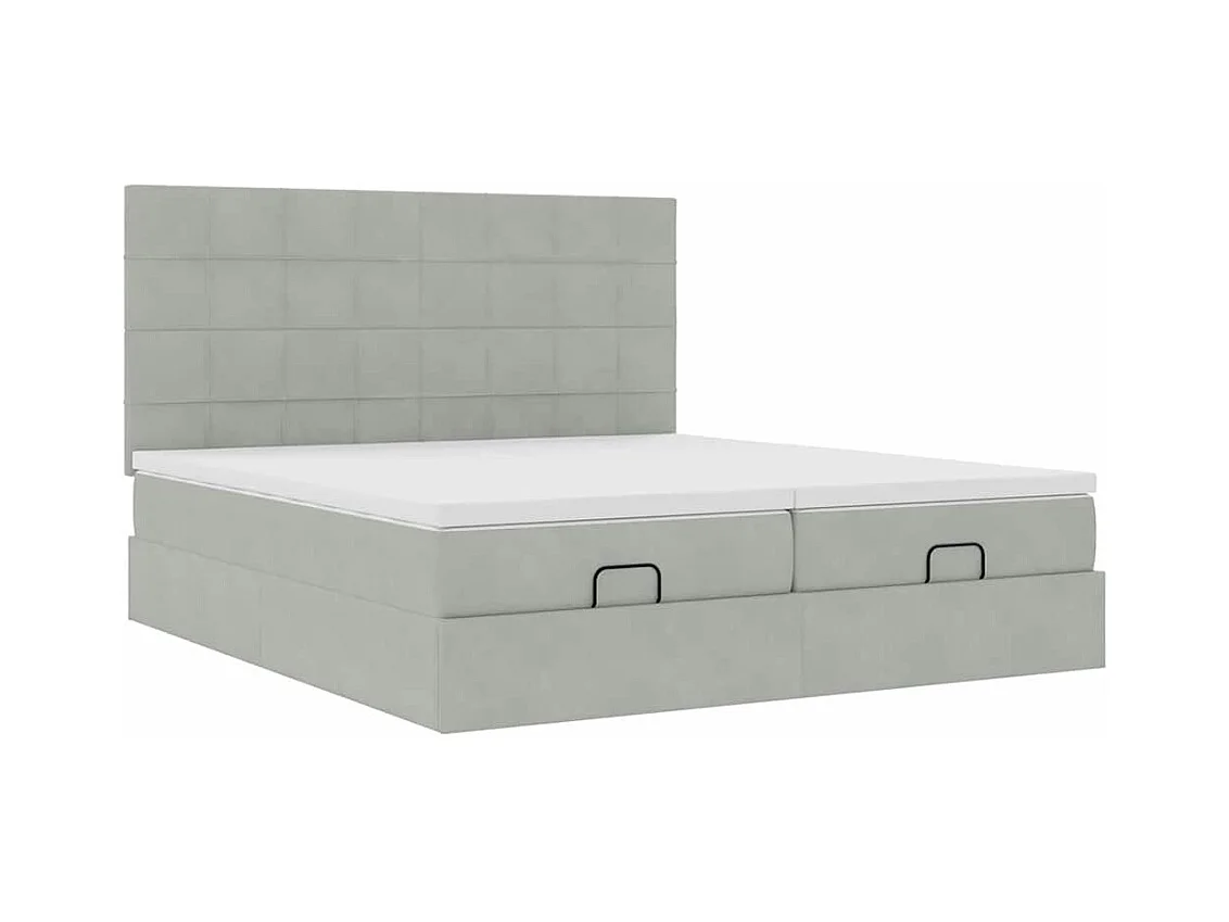 Cadre de lit ottoman et matelas gris clair 160x200cm velours