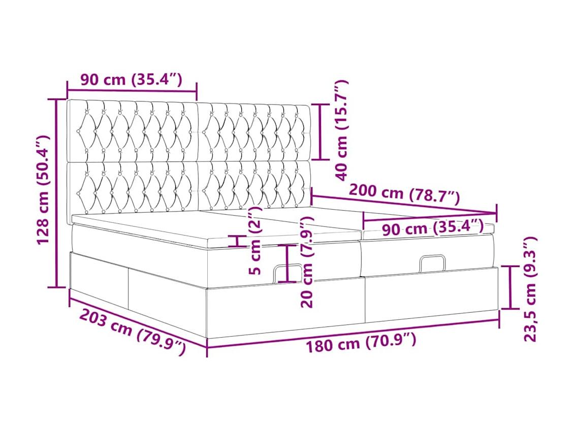 Cadre de lit ottoman avec matelas gris foncé 180x200cm velours