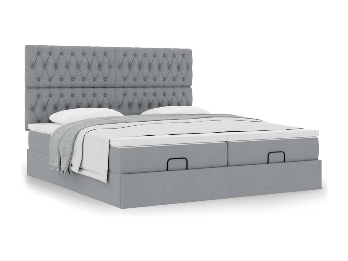 Cadre de lit ottoman et matelas gris clair 180x200cm tissu