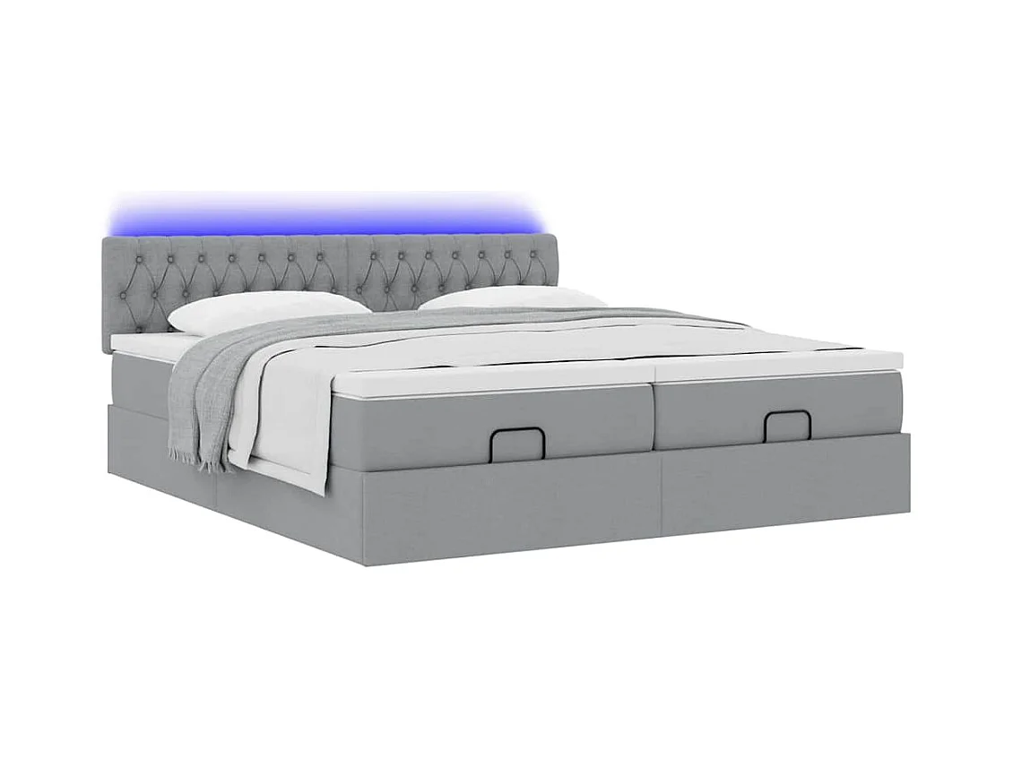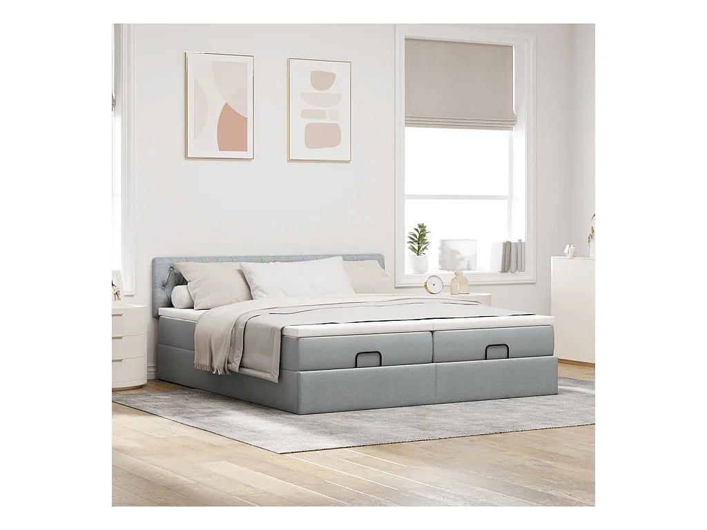 Cadre de lit ottoman et matelas gris clair 200x200cm tissu