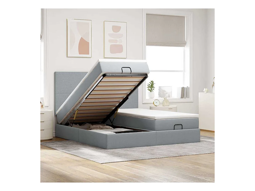 Cadre de lit ottoman et matelas gris clair 200x200cm tissu