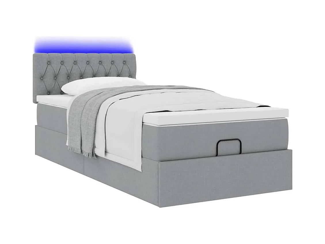 Cadre de lit ottoman et matelas gris clair 90x190 cm tissu